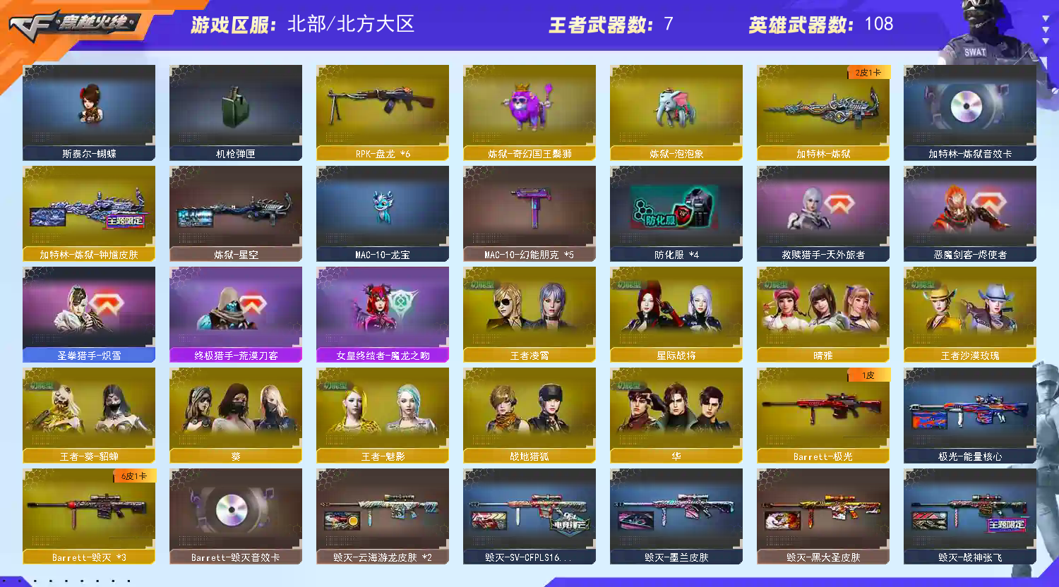 首页 > 租号大厅 > 穿越火线 > 网通区/北方大区 > 痞颜:7刀5皮2玄武 泡泡象国王狮⚡️神威+女帝+影煞