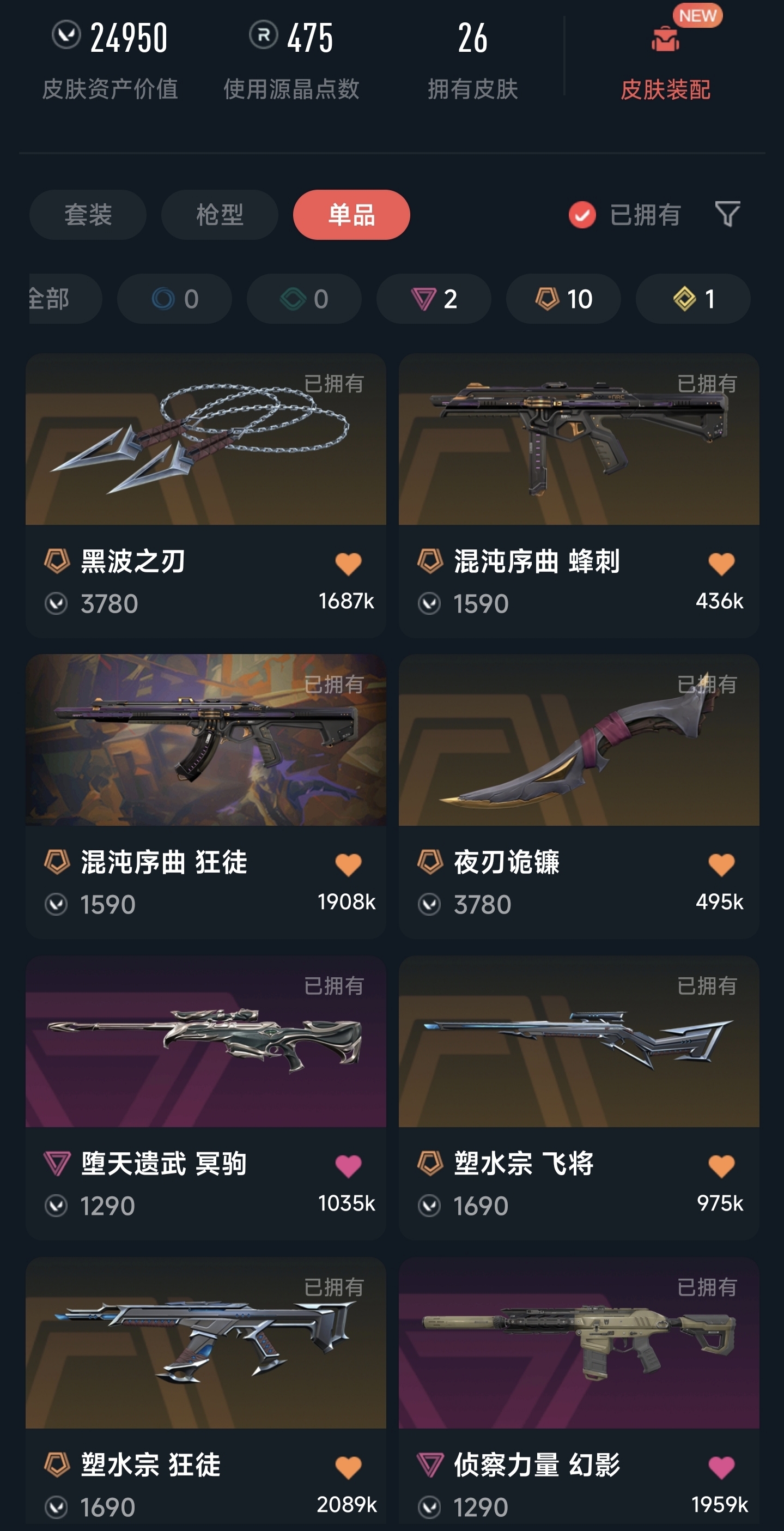 • 皮肤资产价值: 24950