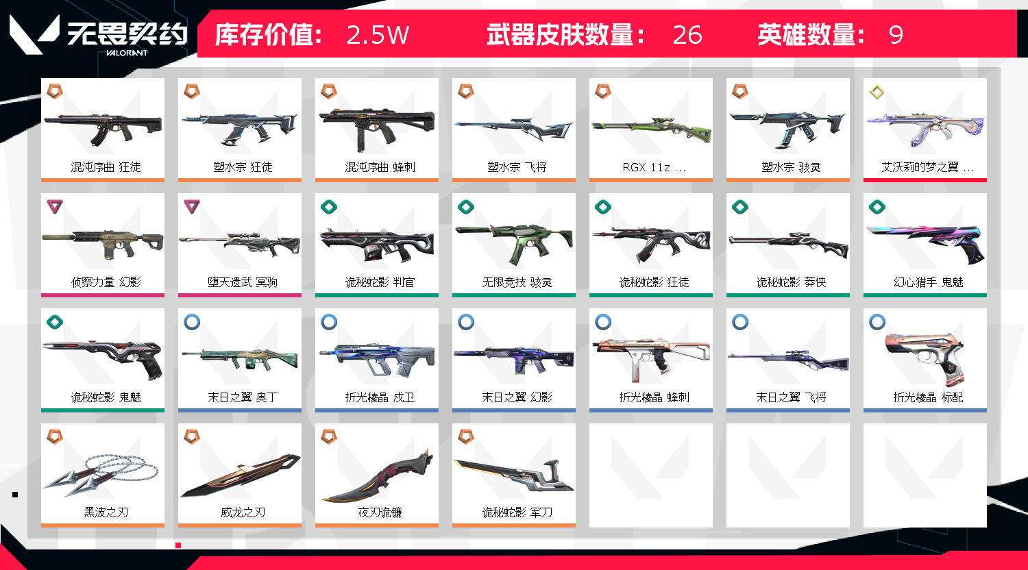 • 武器皮肤数量: 26