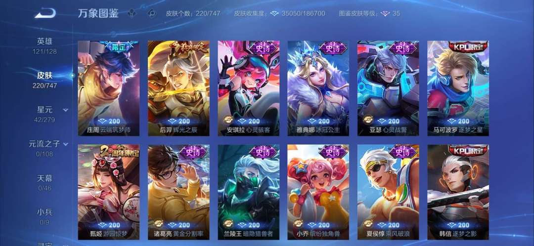 v10、12水562皮、死亡执政官、刘备星传说时之思念、小兵皮肤大耳狗甜茶、瑶无双真我赫兹、愿照·九州拓、怪盗基德、画中仙、至尊宝、凤求凰、神威、天魔缭乱