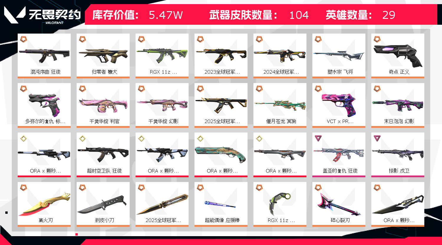 5.4w库存/离火刃/2023-2024-2025冠军赛/ORA x 颗秒全套/超时空卫队 狂徒/剥