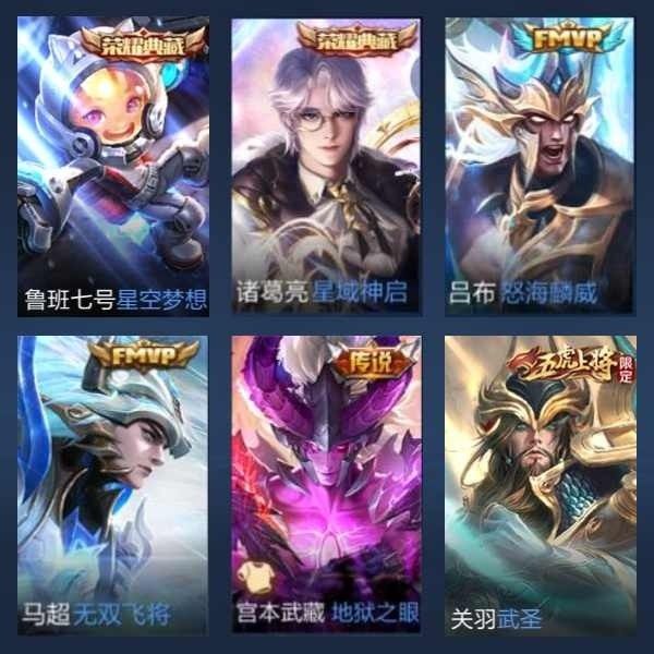 皮肤多、品质高鲁班星空/诸葛亮星域+吕布/马超FMVP300+皮