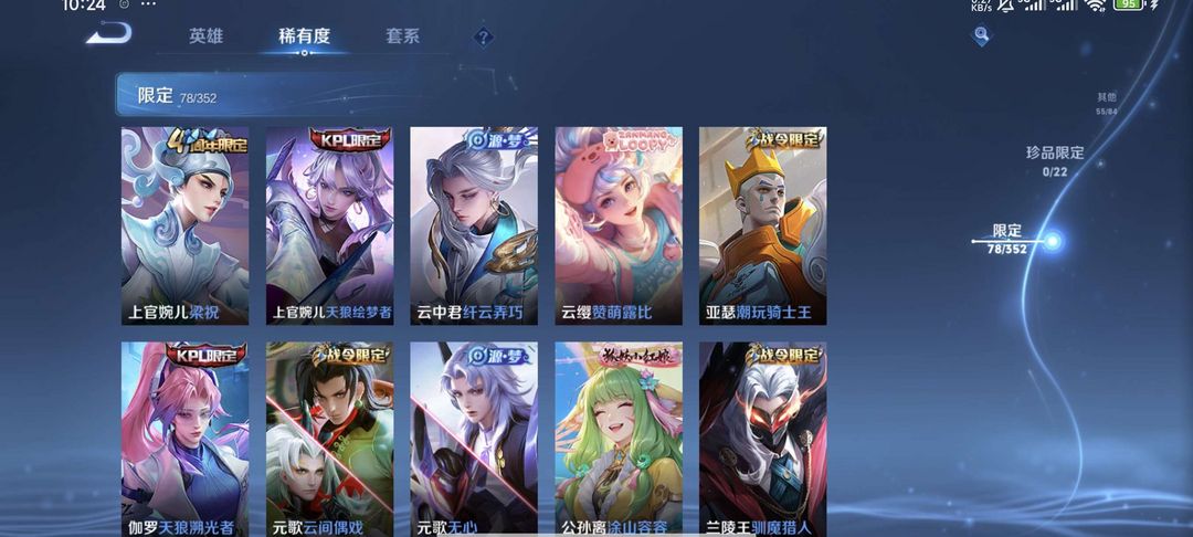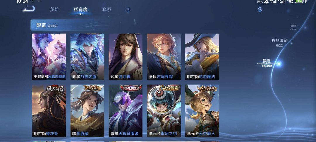 V10、543皮14水、吕布典藏-千魇归渊、愿照·九州拓、愿照·众生和、怪盗基德、伽罗星传说红枫、瑶典藏拾光映像、冥王哈迪斯、、龙年限定、齐天大圣