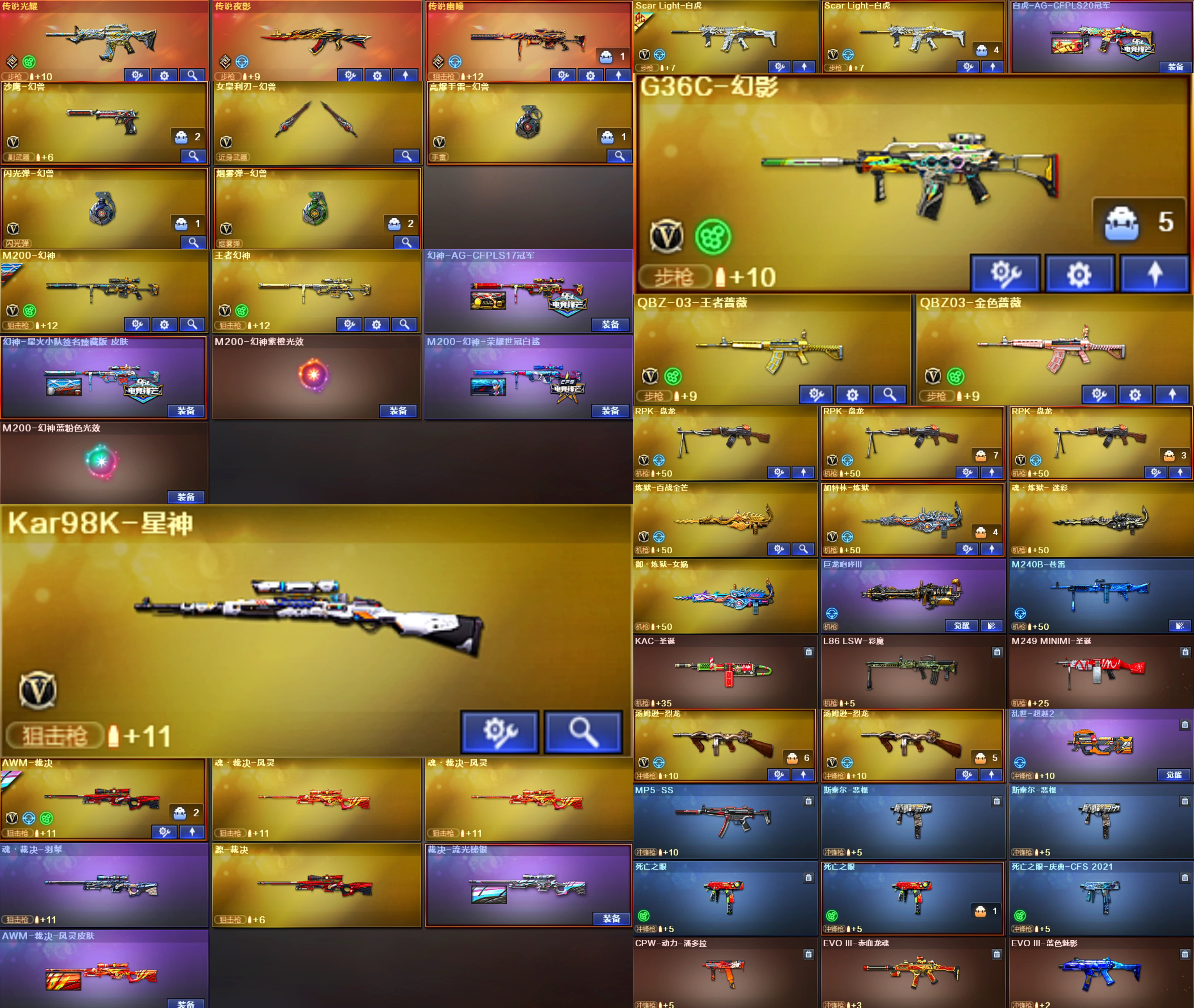 【北部河北一区】【传说幽瞳幻兽套 传说夜影 传说光耀】【幻神星火小队AG白鲨 星神 王者幻神 王者风神 裁决流光秘银】【G36C幻影 白虎AG qbz 玄武】【毁灭SV毁灭音效卡 极光音效卡 雷神荣耀之魄雷神音效卡 黑骑士音效卡 擎天冠军之击 麒麟刺白鲨 屠龙荣耀之锋】【三盘龙 二炼狱 二烈龙】【冠军之刃 COP幻灵 竞技荣光柯尔特】【王者魅影 关小雨 葵 零 影豹 王者之瞳 职业经理 职业选手】;Knife-冠军之刃,RPK-盘龙,QBZ03-金色蔷薇,传说幽瞳,G36C-幻影,M200-幻神,Scar Light-白虎,
