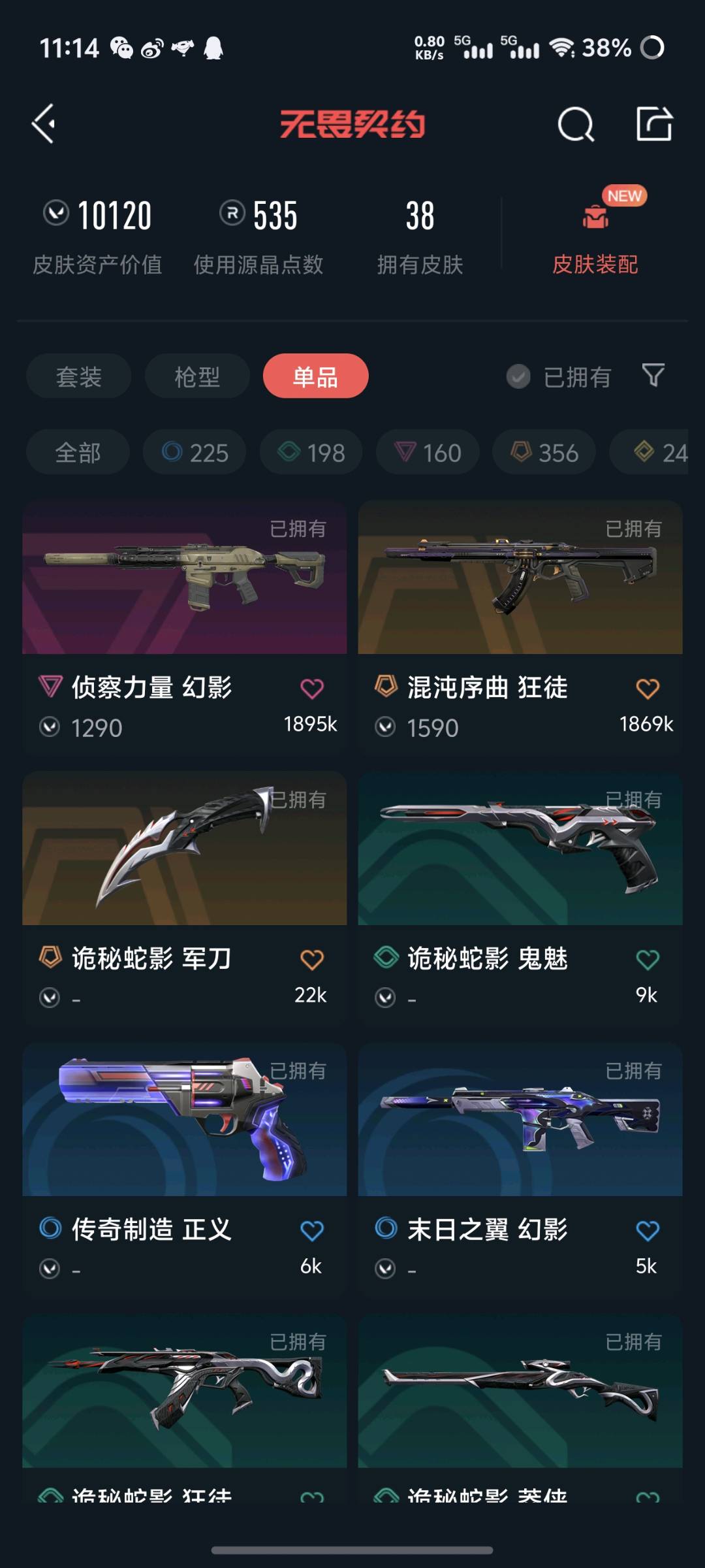 • 皮肤资产价值: 10120
