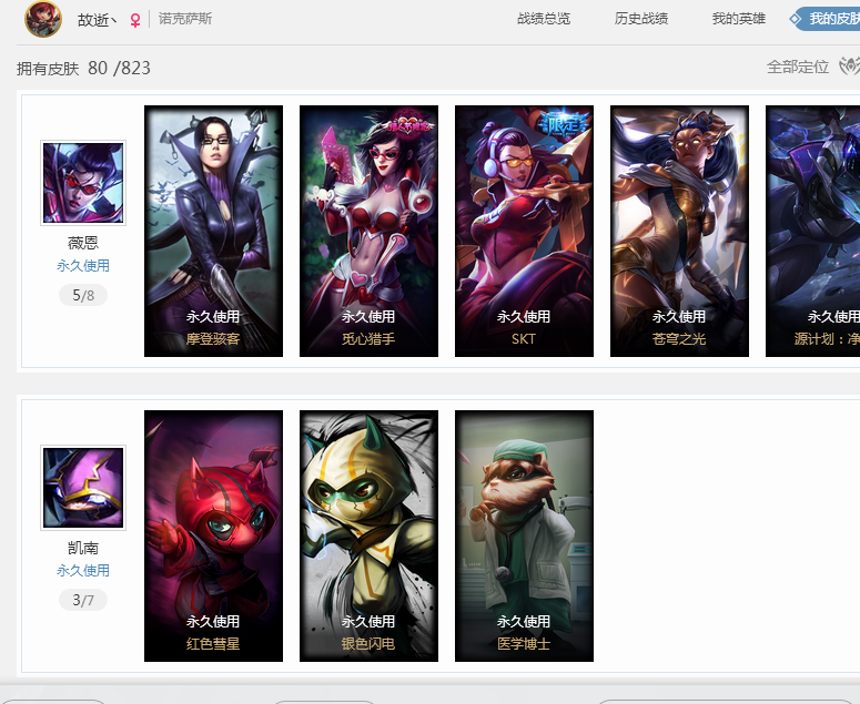 首页 > 租号大厅 > 英雄联盟 > 联盟二区/诺克萨斯 > 诺克萨斯VN的皮肤比较多,116个英雄,冰雪节波比,大树,泳池派对太阳女