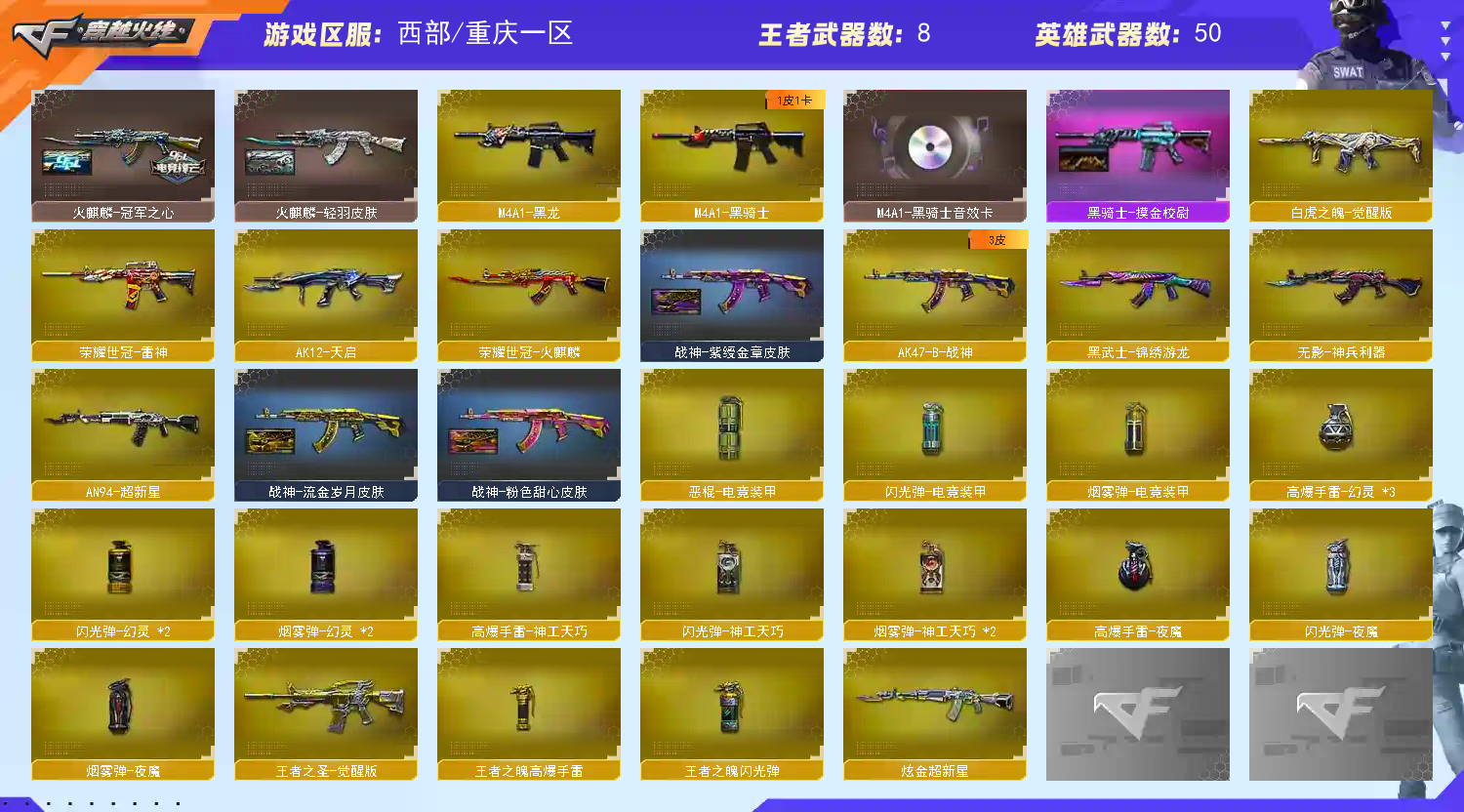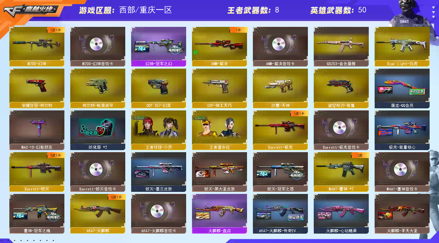 • 游戏区服:穿越火线 / 电信区 / 重庆一区