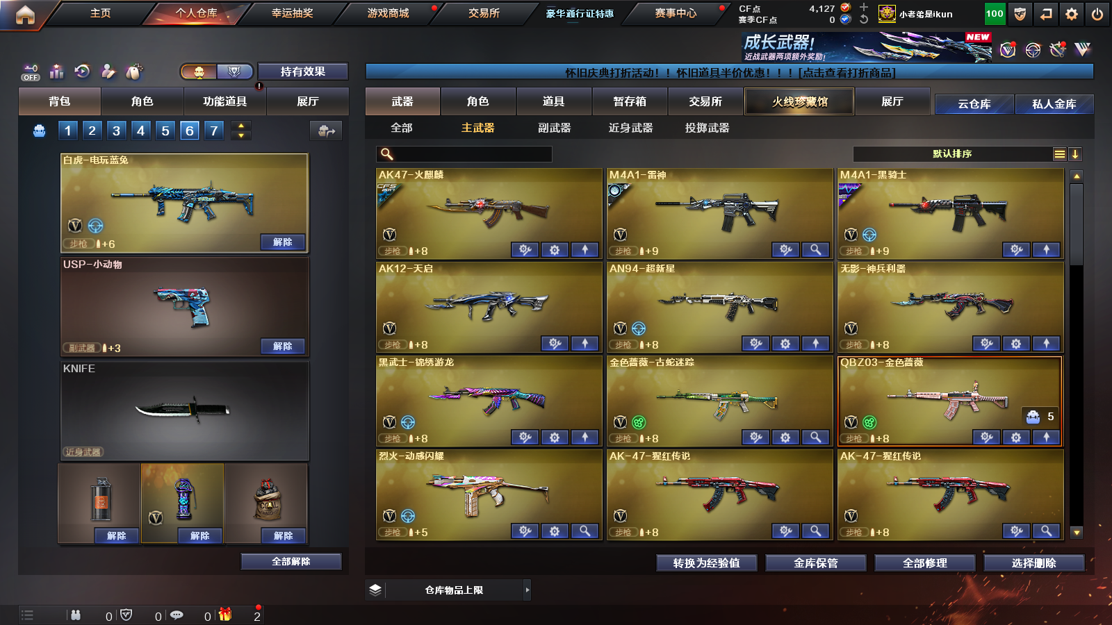 首页 > 租号大厅 > 穿越火线 > 电信区/广东一区 > 爆破号|生化号|挑战号|幻神|星神||裁决|毁灭|雷神|火麒麟|qbz金色蔷薇|白虎|6烈|6盘|