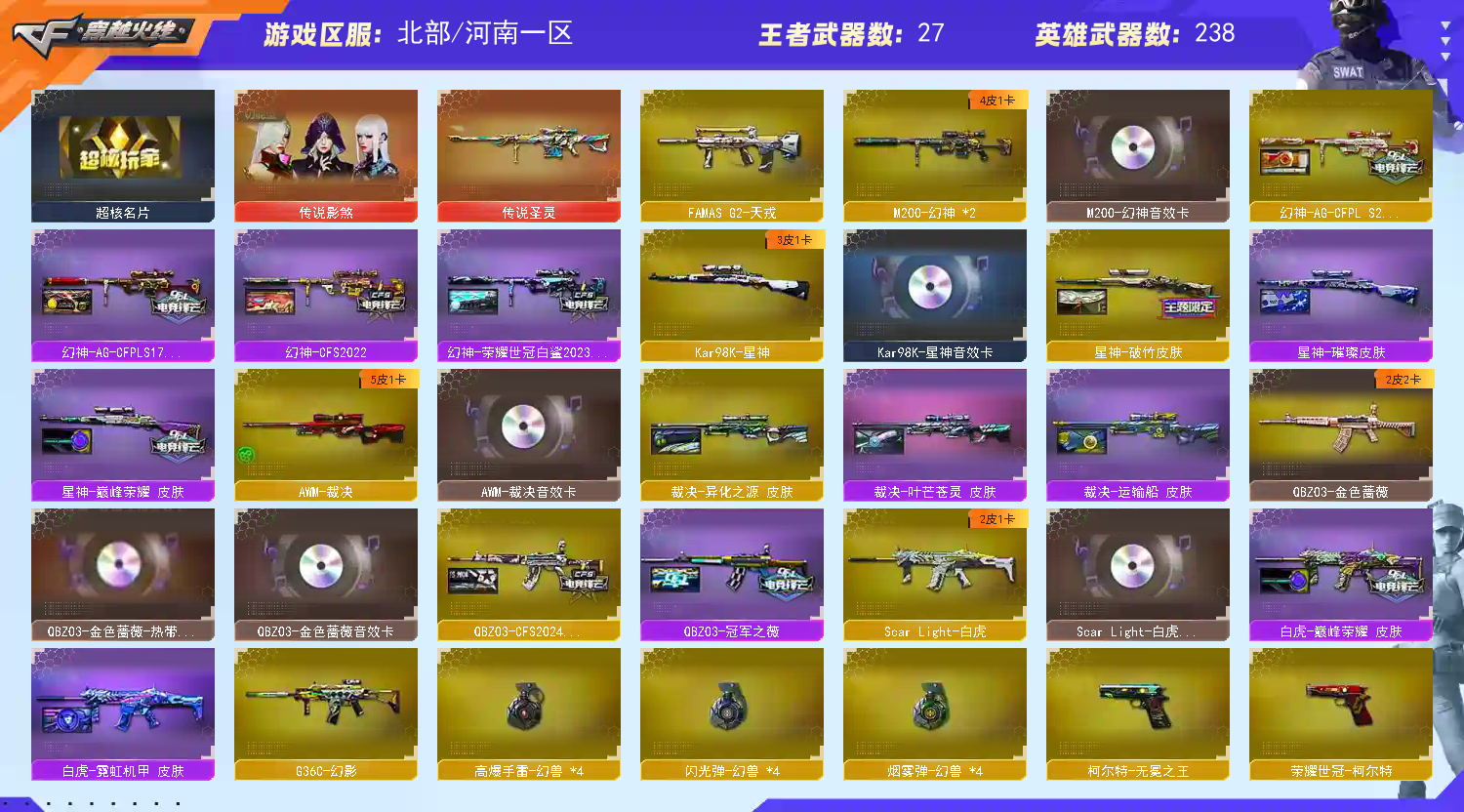 幻兽X4影煞幻影天戎♥幻神音效卡4皮白鲨♥裁决音效卡4皮叶芒♥白虎巅峰*蔷薇冠军♥5柯尔特*2usp