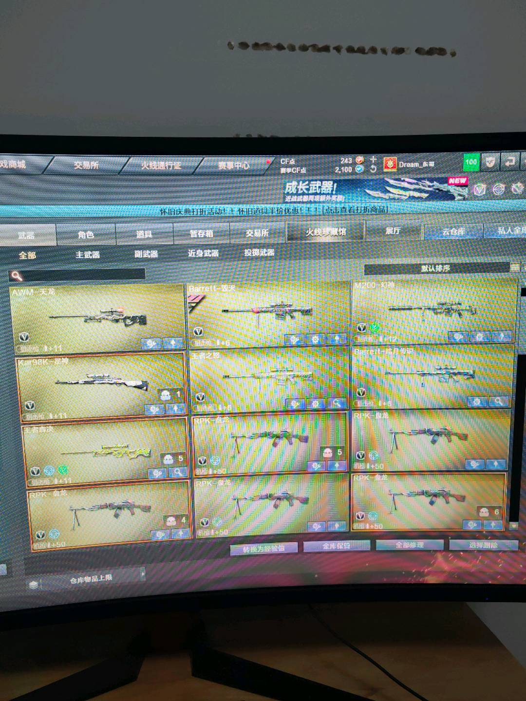 禁止使用外挂,封号追究责任;RPK-盘龙,QBZ03-金色蔷薇,M200-幻神,传说灵眸,Kar98K-星神,