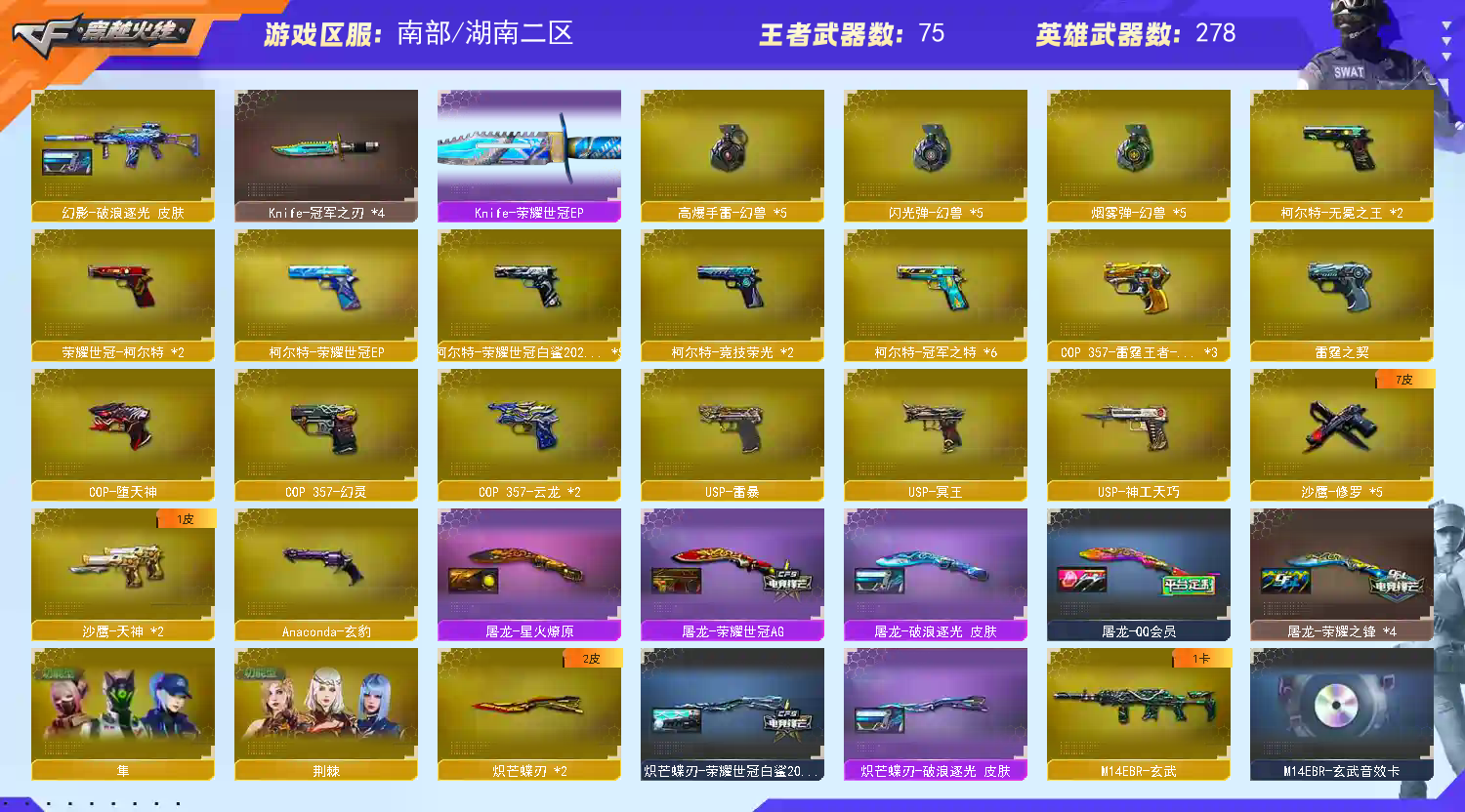• 游戏区服:穿越火线 / 电信区 / 湖南二区