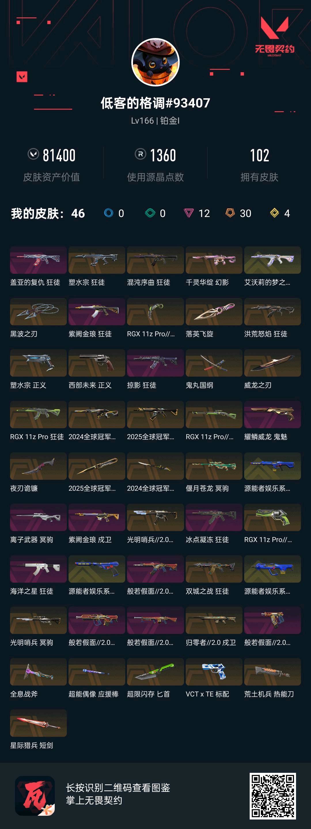 • 游戏区服:无畏契约-wegame / wegame / wegame