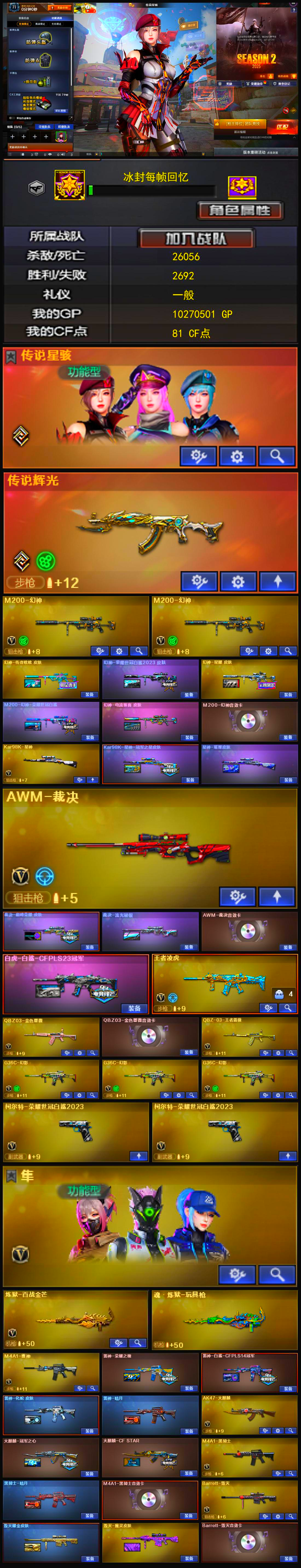 【江西一区】【可二次实名】【可排位】【枪王3】【等级VIP5】【CF点81】【V武器数60】【幻神三件套】【幻神5皮】【裁决三件套】【堕天神套装X1套】【堕天神套装X1套】【雷暴套装X1套】【竞技荣光套装X1套】【传说星骇】【传说辉光】【M200-幻神】【幻神-AG-CFPLS24冠军 皮肤】【幻神-荣耀世冠白鲨2023 皮肤】【幻神-星耀 皮肤】【M200-幻神-荣耀世冠白鲨】【幻神-电流骇客 皮肤】【M200-幻神音效卡】【Kar98K-星神】【Kar98K-星神-冠军之星皮肤】【星神-璀璨皮肤】【AWM-裁决】【AWM-裁决音效卡】【裁决-巅峰荣耀 皮肤】【裁决-流光秘银】【白虎-白鲨-CFPLS23冠军】【王者凌虎】【QBZ03-金色蔷薇】【QBZ03-金色蔷薇音效卡】【QBZ-03-王者蔷薇-觉醒版】【G36C-幻影】【柯尔特-荣耀世冠白鲨2023】【炼狱-百战金芒】【魂·炼狱-玩具枪】【传说星骇】【奇洋探员】【乔伊教练】【王者-魅影】【星际战将】【修道士】【云海玲珑】【隼】【M4A1-雷神】【雷神-荣耀之魄】【M4A1-雷神-白鲨皮肤】【雷神-化蛇 皮肤】【雷神-暗月】【AK47-火麒麟】【火麒麟-冠军之心】【火麒麟-CFSTAR】【M4A1-黑骑士】【黑骑士-暗月】【M4A1-黑骑士音效卡】【Barrett-毁灭】【毁灭耀金皮肤】【毁灭-魔灵皮肤】【Barrett-毁灭音效卡】;