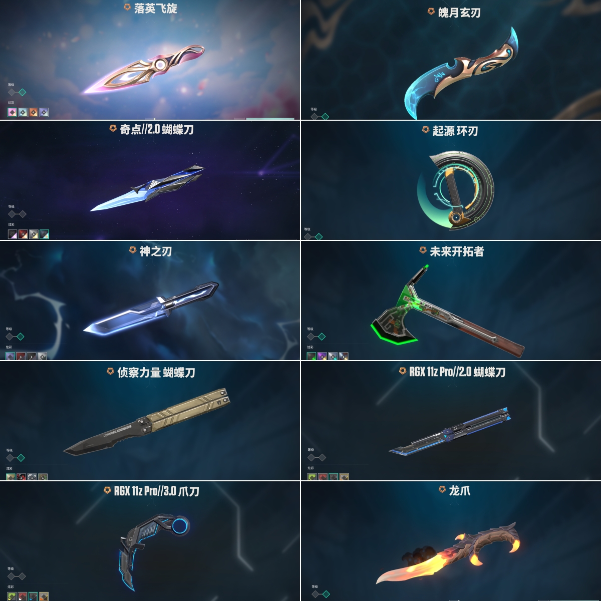 【拥有近战武器】澄湖滟/日耀风暴-遗器/诡秘蛇影-军刀/神圣领域-战刀/荒土机兵-热能刀/超限闪存-匕首/魄月玄刃/RGX-11z-Pro//2.0-蝴蝶刀/落英飞旋/RGX-11z-Pro//3.0-爪刀/侦察力量-蝴蝶刀/艾沃莉的魔法棒/
