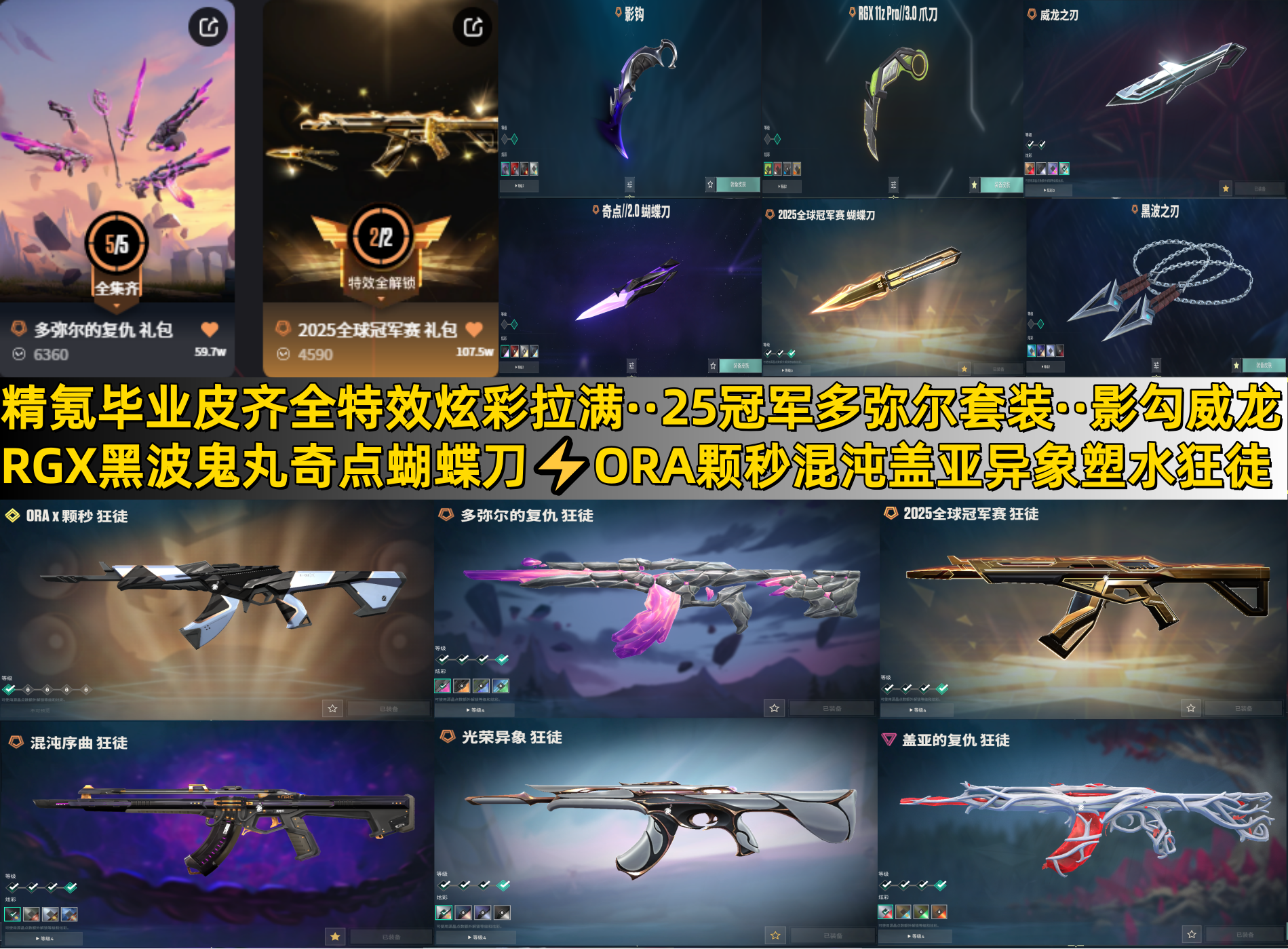 精氪毕业皮齐全特效炫彩拉满⚡25冠军多弥尔套影勾威龙RGX黑波奇点蝴蝶刀⚡ORA颗秒混沌盖亚异象狂徒
