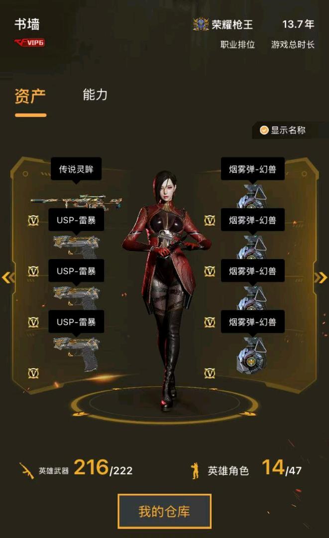 喜欢的老板可以点收藏 弹匣道具都是满的;USP-雷暴,柯尔特-荣耀世冠白鲨2023,炽芒蝶刃,传说影煞,传说女帝,电竞教官-云悠悠,王者沙漠玫瑰,