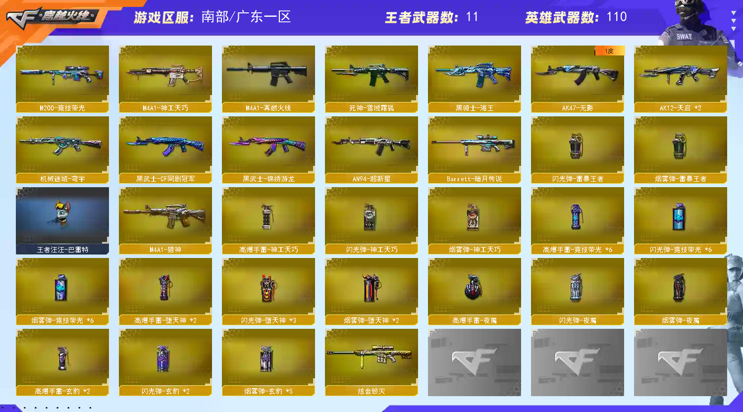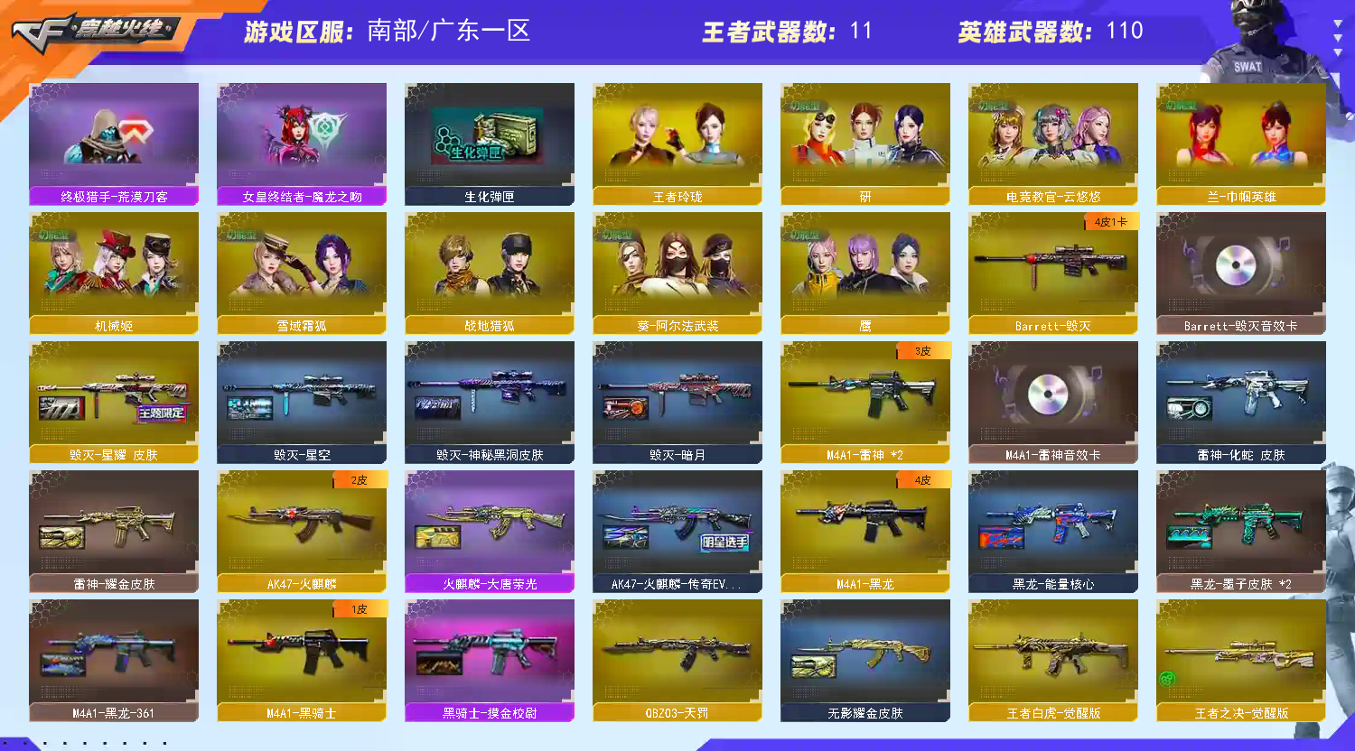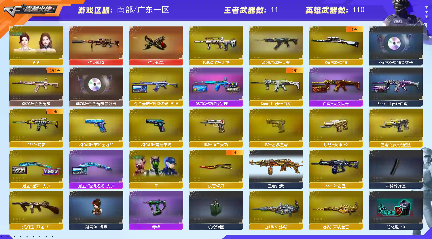 不喜欢的朋友可以不租,请别恶意删好友,谢谢大家 ,祝大家玩的开心;USP-雷暴王者,传说幽冥,炽芒蝶刃,隼,电竞教官-云悠悠,妮妮,QBZ03-金色蔷薇,
