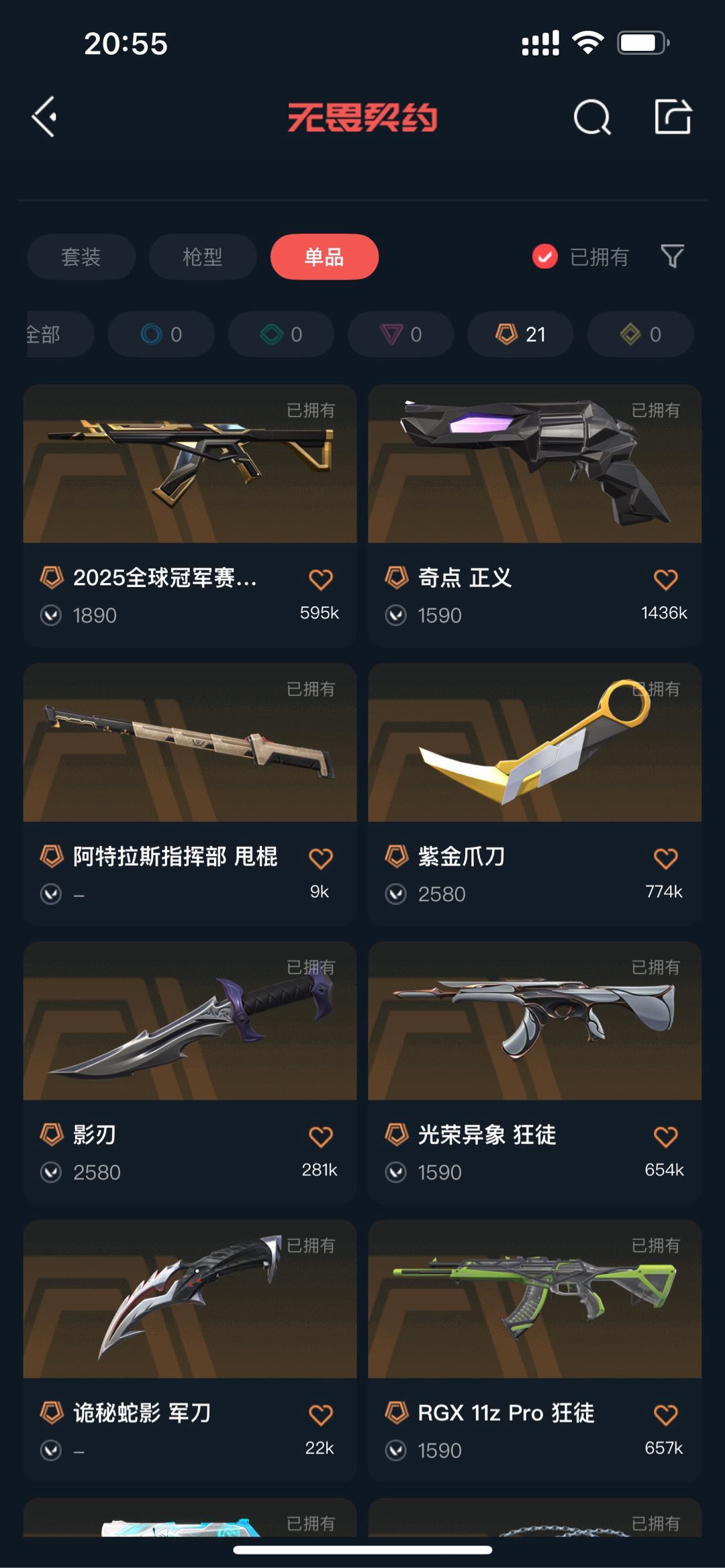 • 传奇数量: 21