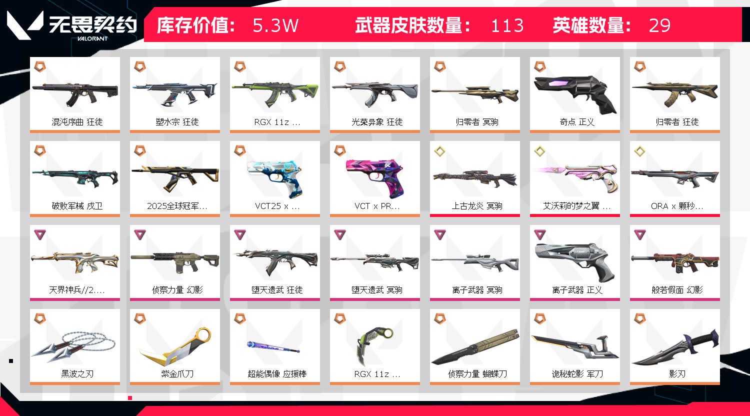 • 武器皮肤数量: 113