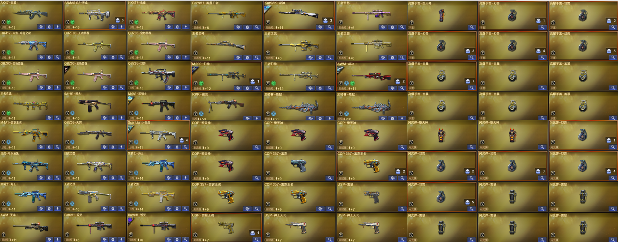首发白虎光海夜岚❥女帝金名五套幻兽❥三花6传说❥手枪天花板❥省冠名片满卡❥白虎QBZ裁决毁灭全质量皮