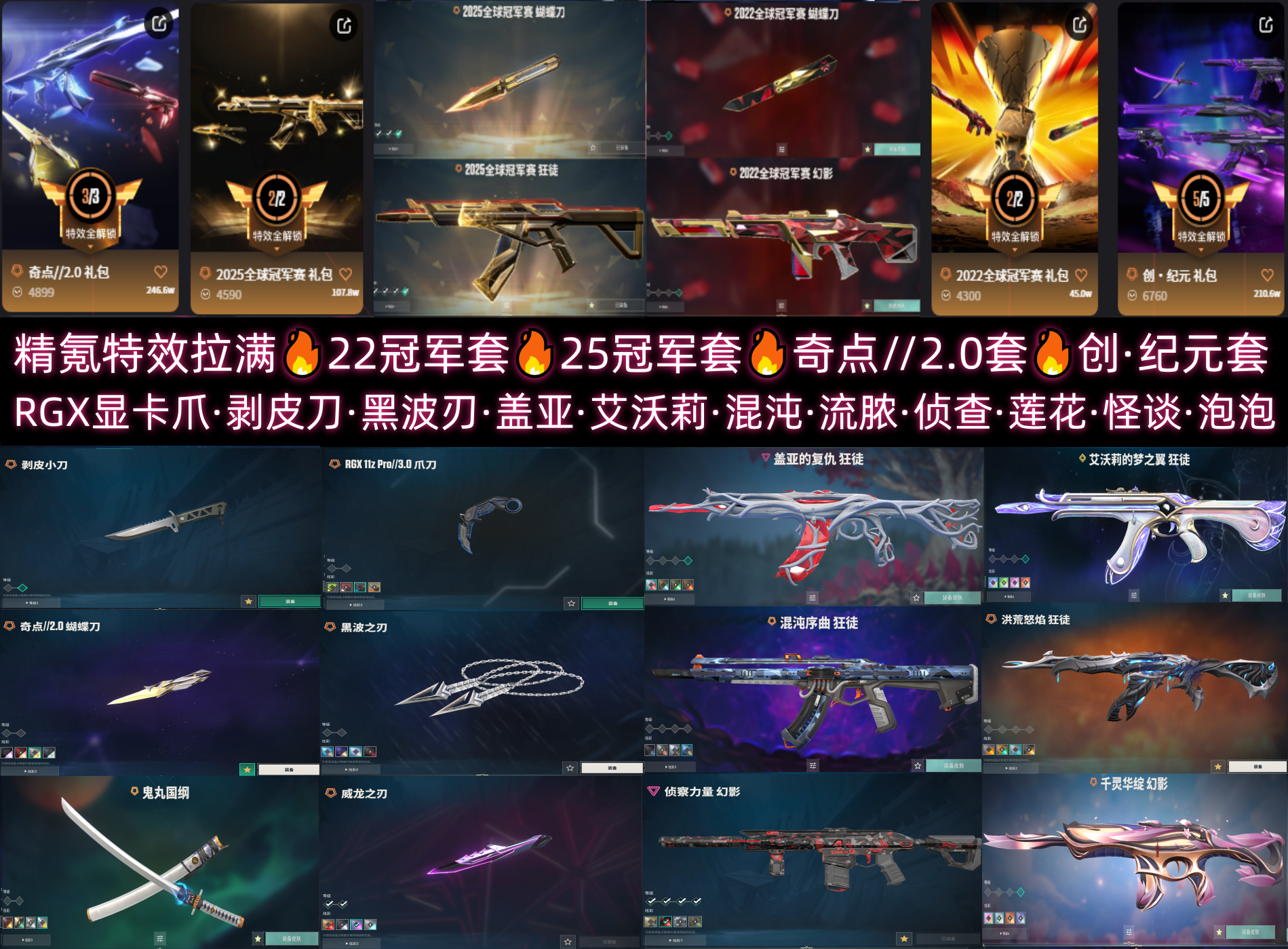 特效拉满⚡22套⚡25冠军套奇点20套⚡显卡爪黑波威龙刃剥皮刀⚡盖亚艾沃莉混沌流脓⚡侦查莲花怪谈泡泡