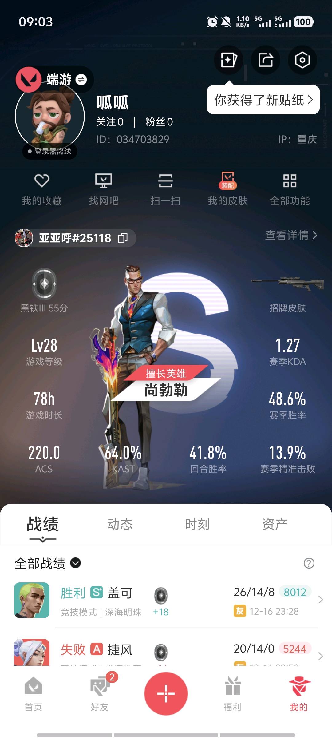 • 游戏区服:无畏契约-wegame / wegame / wegame