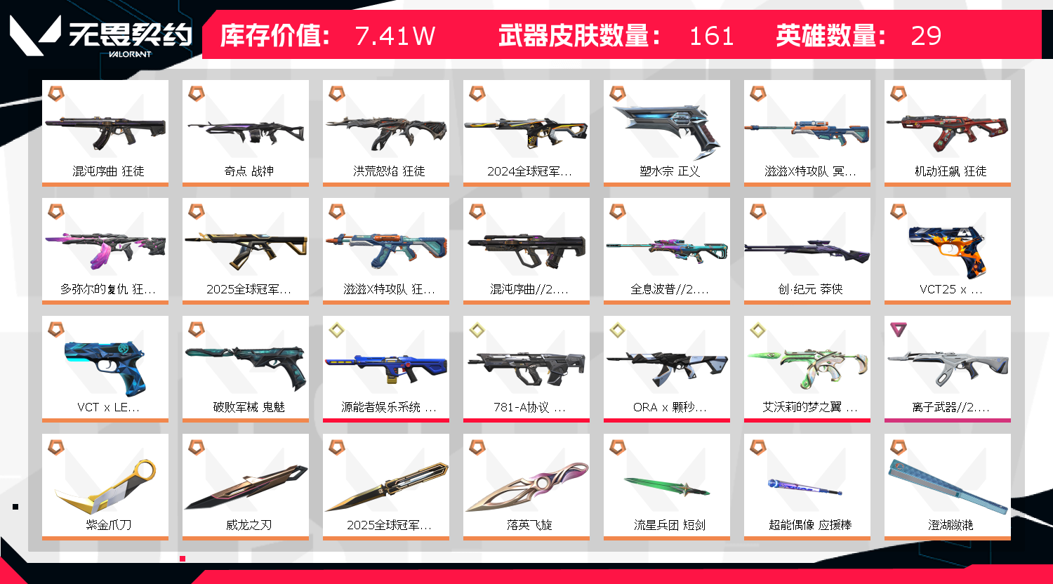 首页 > 租号大厅 > 无畏契约-wegame > wegame/wegame > 【精品25/24冠军套】ORA颗秒/多米尔滋滋特效AK4幻神+幻影源能者侦查+落英穿花威龙紫金爪