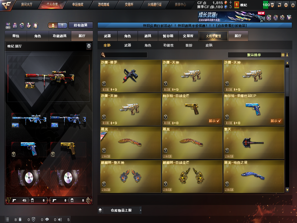首页 > 租号大厅 > 穿越火线 > 电信区/广西一区 > 爆破号|裁决三件套+幻神新EP老AG|百战金芒柯尔特+EP柯尔特|三防潘多拉N