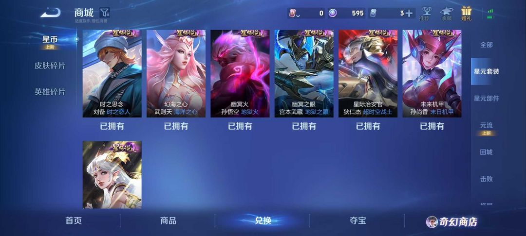 V10、543皮14水、吕布典藏-千魇归渊、愿照·九州拓、愿照·众生和、怪盗基德、伽罗星传说红枫、瑶典藏拾光映像、冥王哈迪斯、、龙年限定、齐天大圣