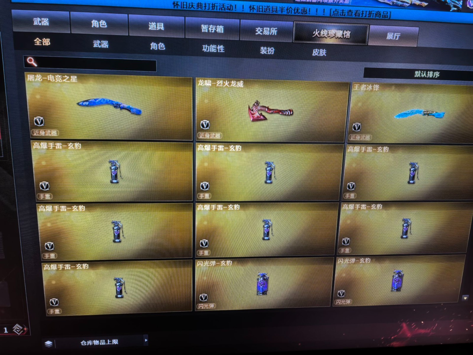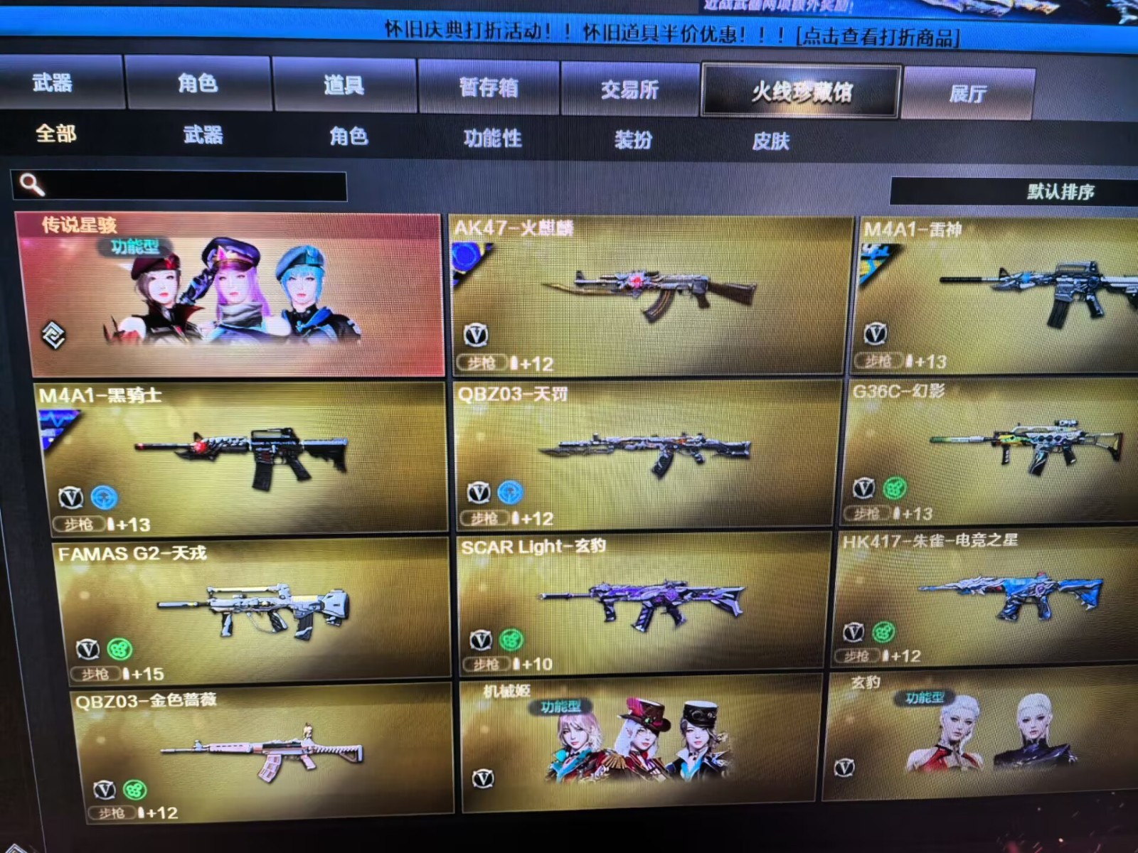 爆破号基本上都有;USP-雷暴,USP-雷暴王者,传说星骇,QBZ03-金色蔷薇,G36C-幻影,M200-幻神,