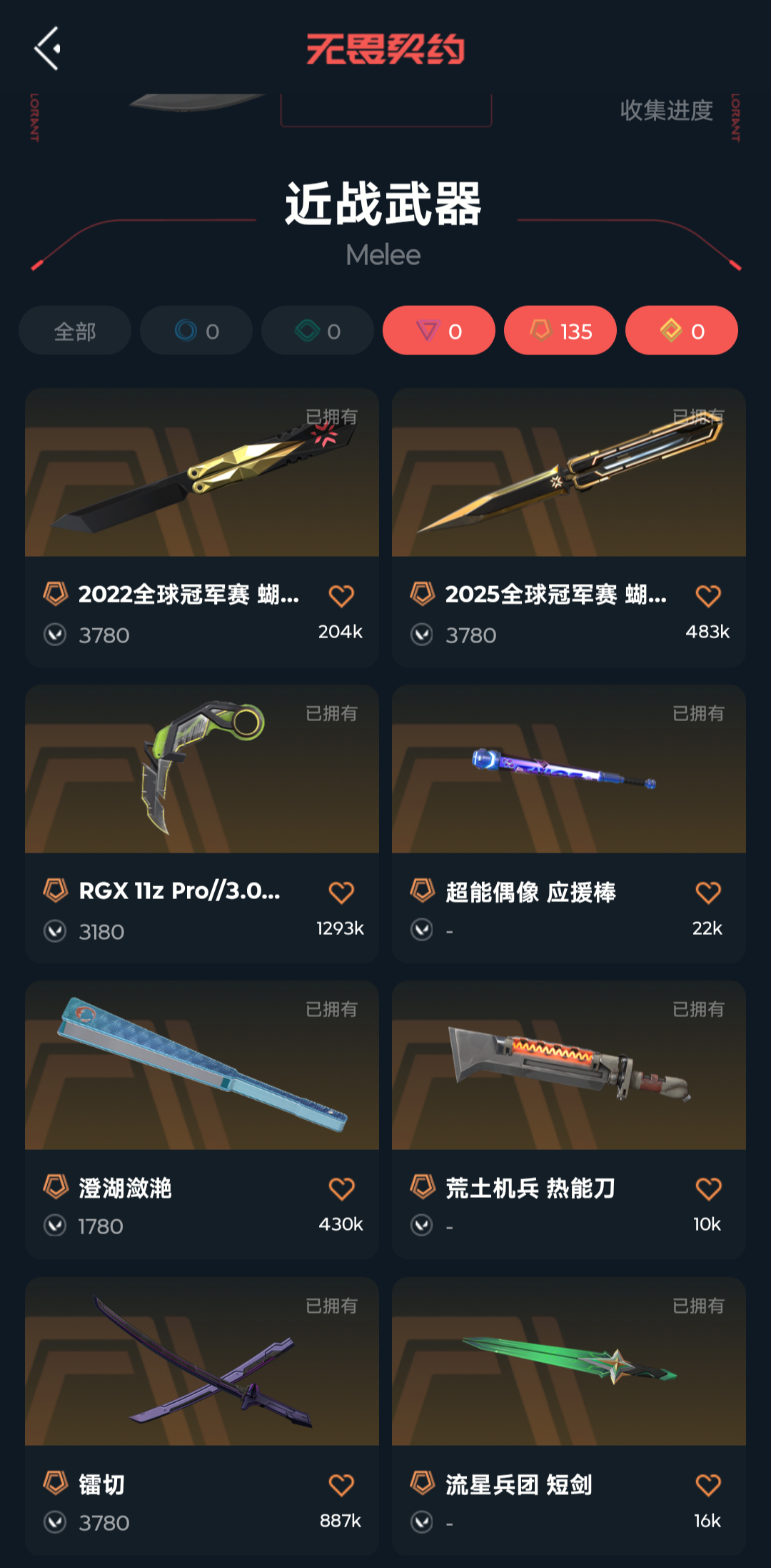 • 武器皮肤数量: 134