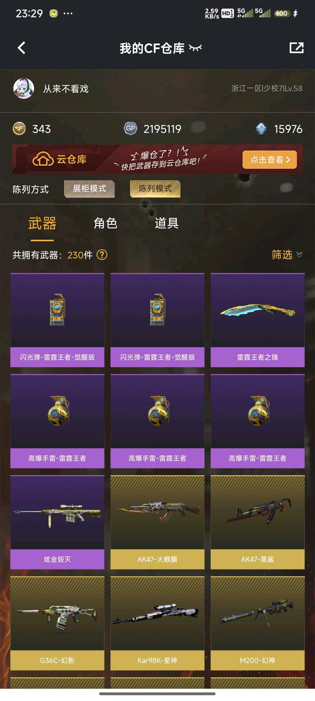 • 游戏区服:穿越火线 / 电信区 / 浙江一区