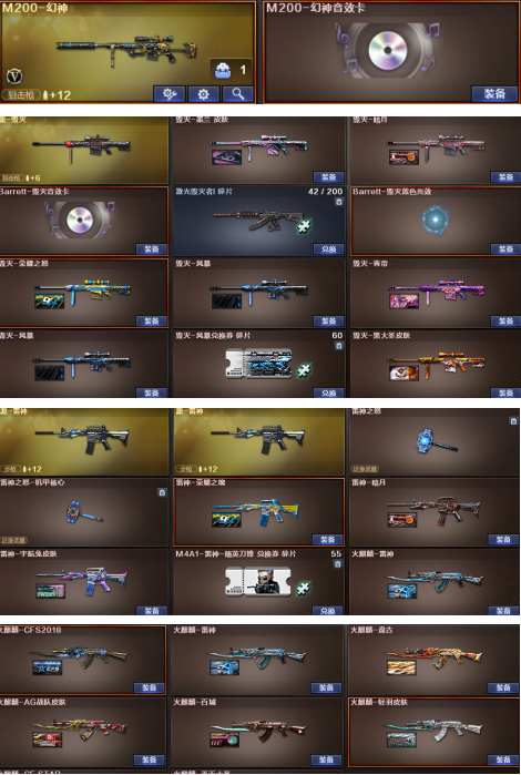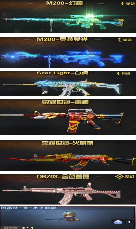 东部M-200幻神音效卡+柯尔特-荣耀世冠整套M竞技荣光套+6烈龙6盘龙斯泰尔蝴蝶;荣耀世冠-柯尔特,RPK-盘龙,QBZ03-金色蔷薇,M200-幻神,Scar Light-白虎,