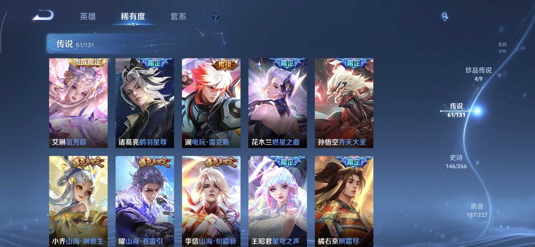 V10、543皮14水、吕布典藏-千魇归渊、愿照·九州拓、愿照·众生和、怪盗基德、伽罗星传说红枫、瑶典藏拾光映像、冥王哈迪斯、、龙年限定、齐天大圣