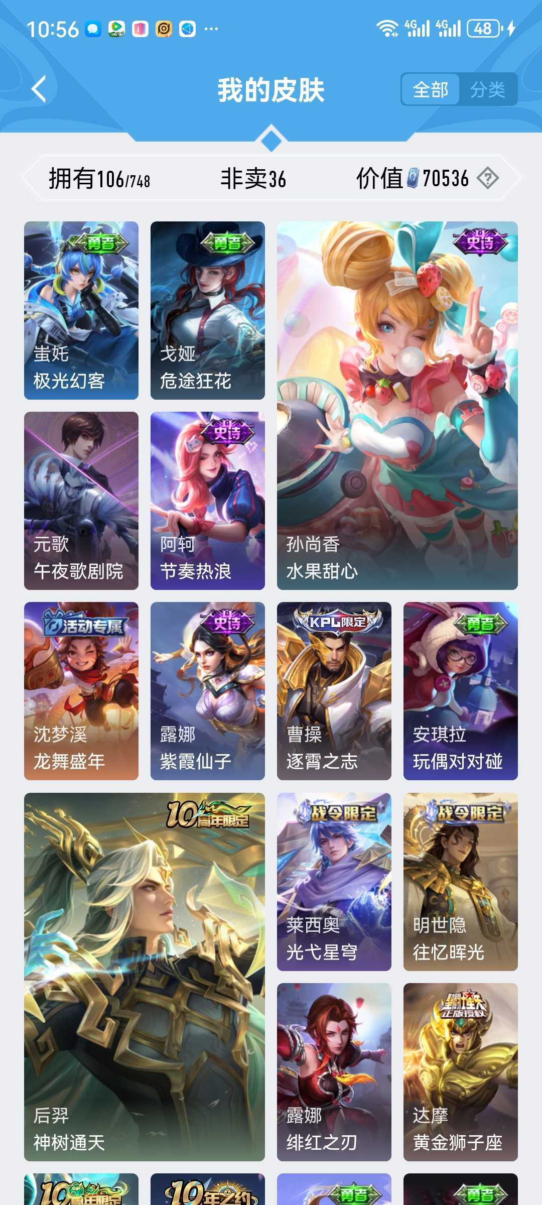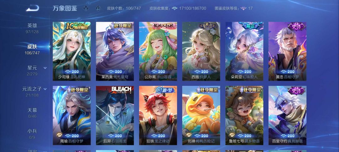 V10瑶大耳狗黑崎一护朽木白哉十周年限定貂蝉仲夏夜之梦十年之约曹操限定逐宵之志今年新皮基本上都有