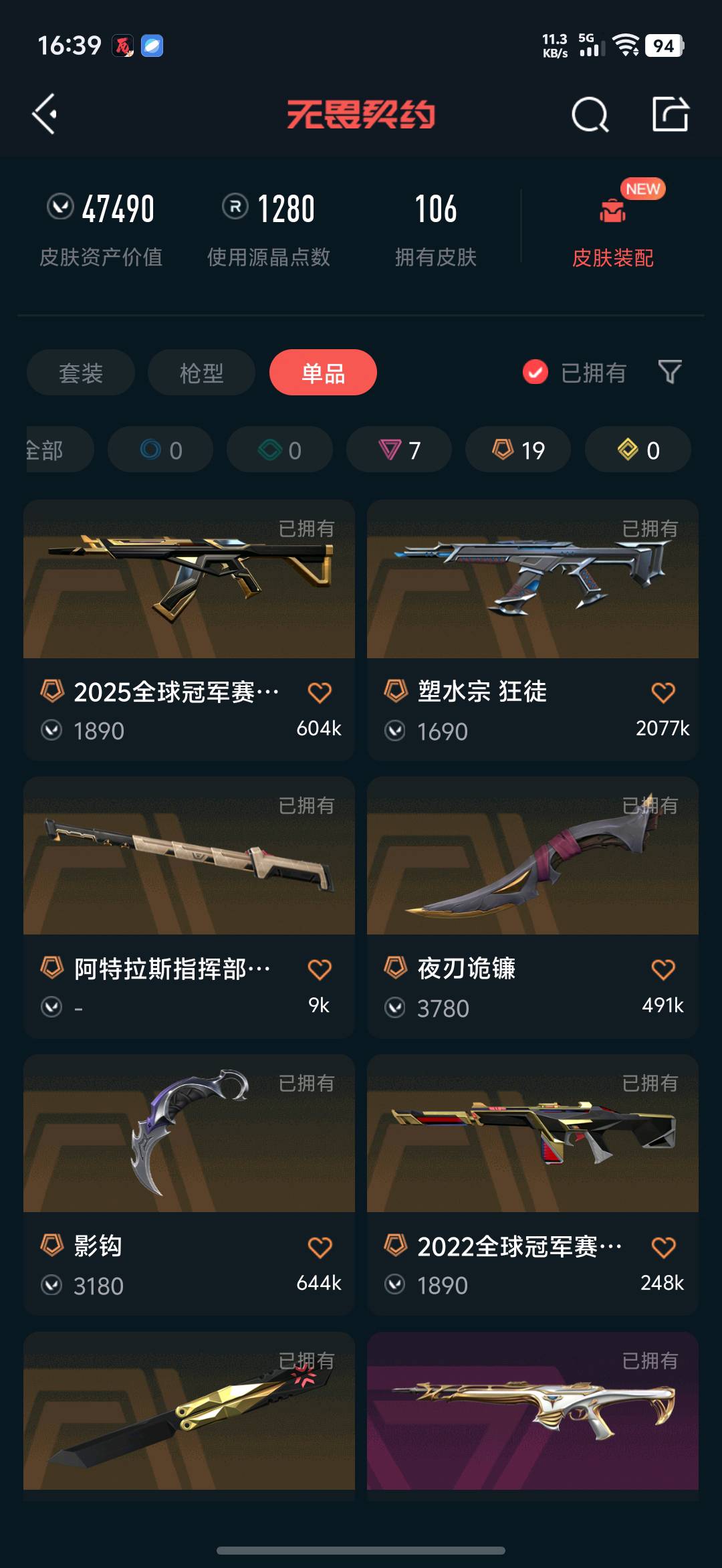 • 武器皮肤数量: 108
