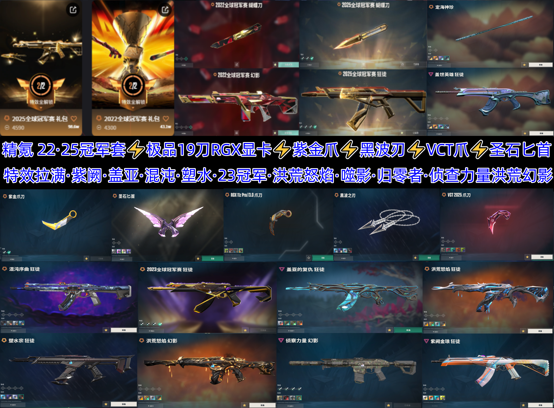 精氪毕业皮齐全特效炫彩拉满⚡22·25冠军套显卡紫金爪VCT黑波圣石⚡盖亚23ak混沌塑水流脓⚡侦查
