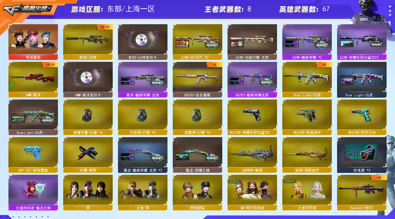 首页 > 租号大厅 > 穿越火线 > 电信区/上海一区 > 幻卡裁决卡|传说星赅|4幻兽套|幻神白鲨2023AG2024巅峰荣耀|冠特白虎冠军|王星裁决巅峰|