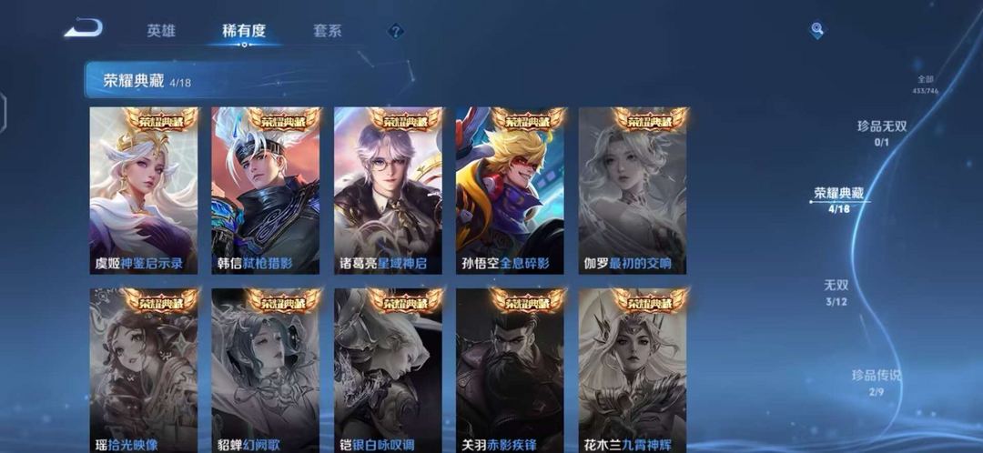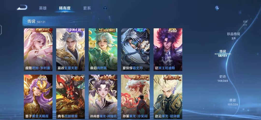 v10、524皮5水4无双、遇见神鼓、齐天大圣、白虎志、韩信荣耀典藏、72传说、愿照·九州拓、时之魔女、瑶无双、青丘、九尾、神器明辉仪
