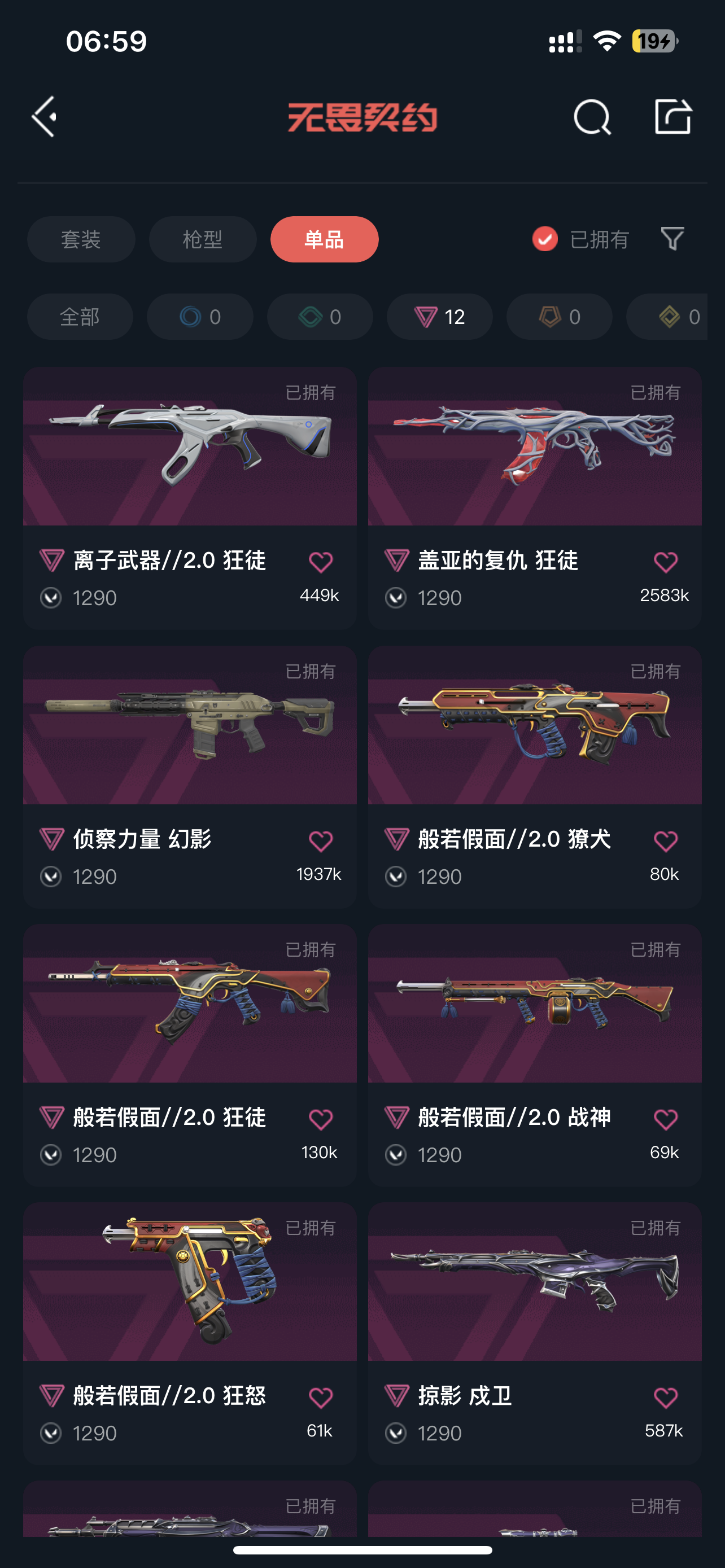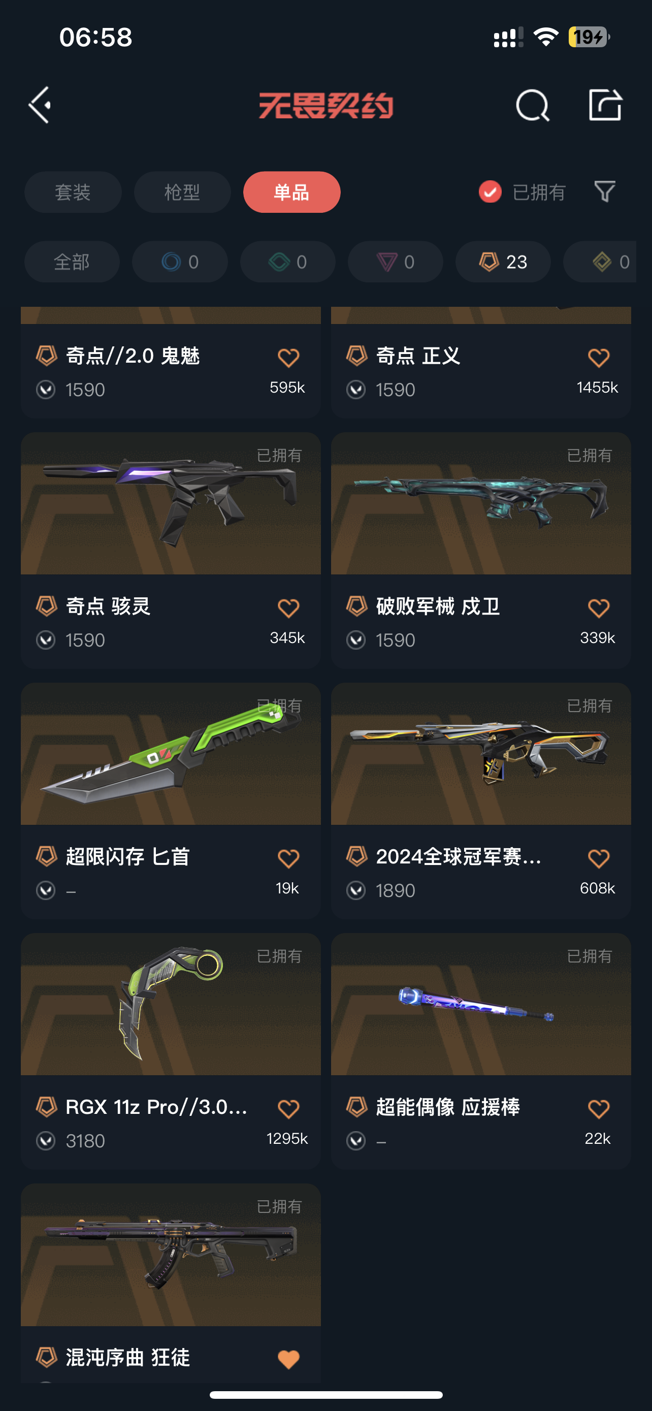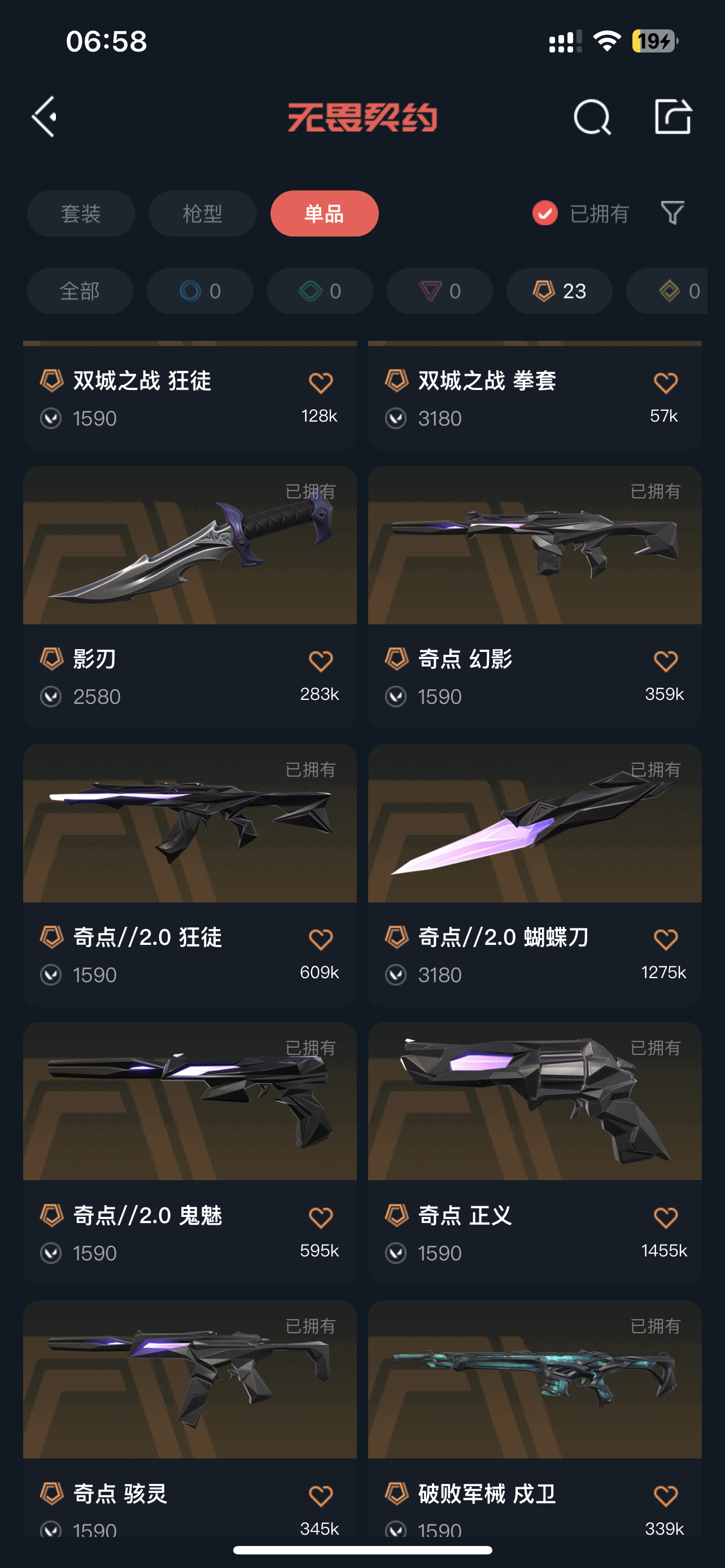 掠夺套装/奇点2.0套装/般若假面2.0套装/双城之战套装/盖亚的复仇狂徒/离子狂徒/侦查幻影/威龙之刃/奇点正义/离子正义/24全球冠军赛幻影/25冠军赛狂徒/显卡爪刀;威龙之刃,盖亚的复仇 狂徒,掠影 戍卫,掠影 狂徒,侦察力量 幻影,混沌序曲 狂徒,2024全球冠军赛 幻影,