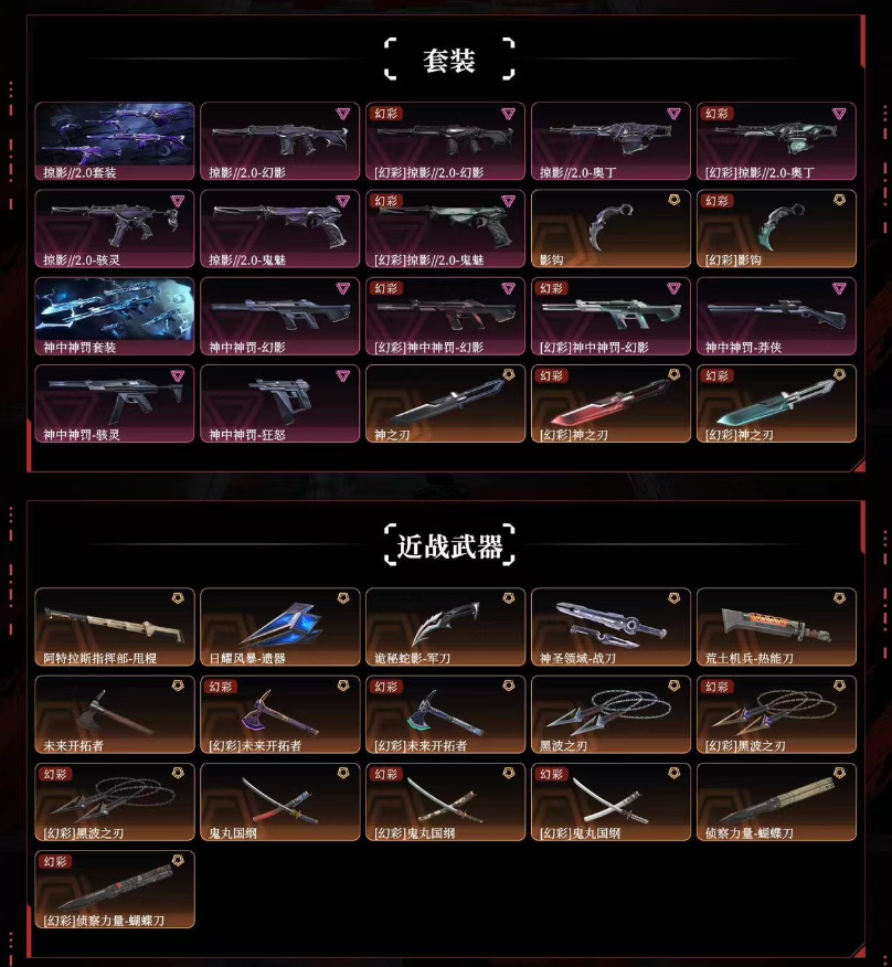 掠影2.0套♥25冠军套♥神罚套♥显卡狂徒♥混沌♥塑水宗♥全息2.0♥归零2.0♥离子2.0♥掠影狂