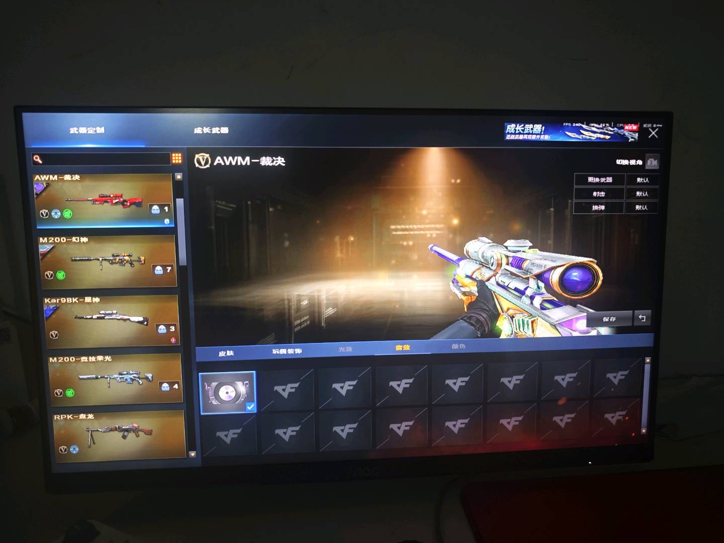 8幻神皮加音效卡/雷神荣耀/星神/裁决加音效卡/主流武器全音效卡;USP-雷暴,柯尔特-冠军之特,电竞教官-云悠悠,RPK-盘龙,QBZ03-金色蔷薇,传说幽瞳,M200-幻神,