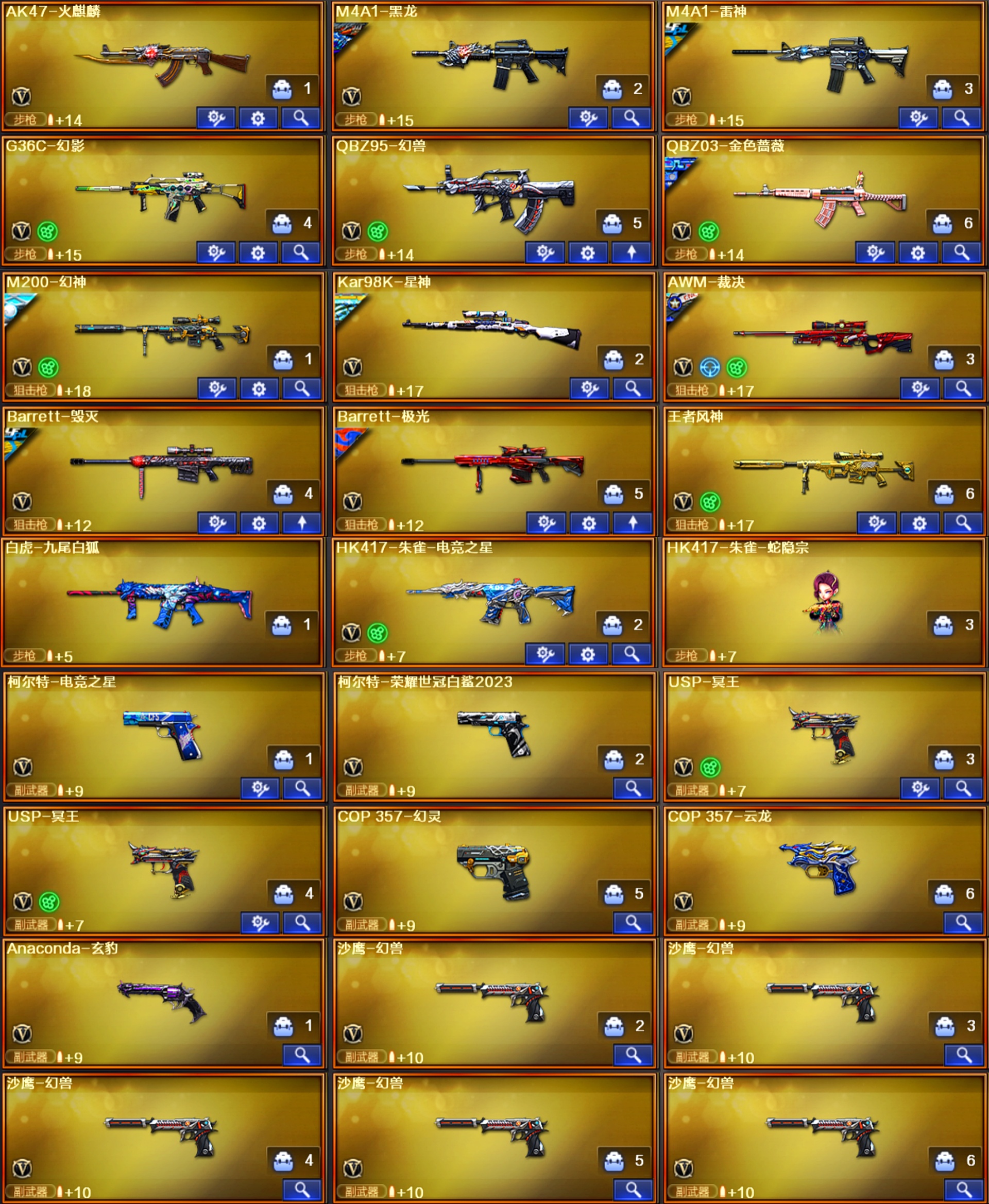 幻兽X5幻影电竞之星柯尔特♥幻神音效卡2皮白鲨念旧♥裁决音效卡3皮风灵♥蔷薇电竞之星九尾白虎♥2us