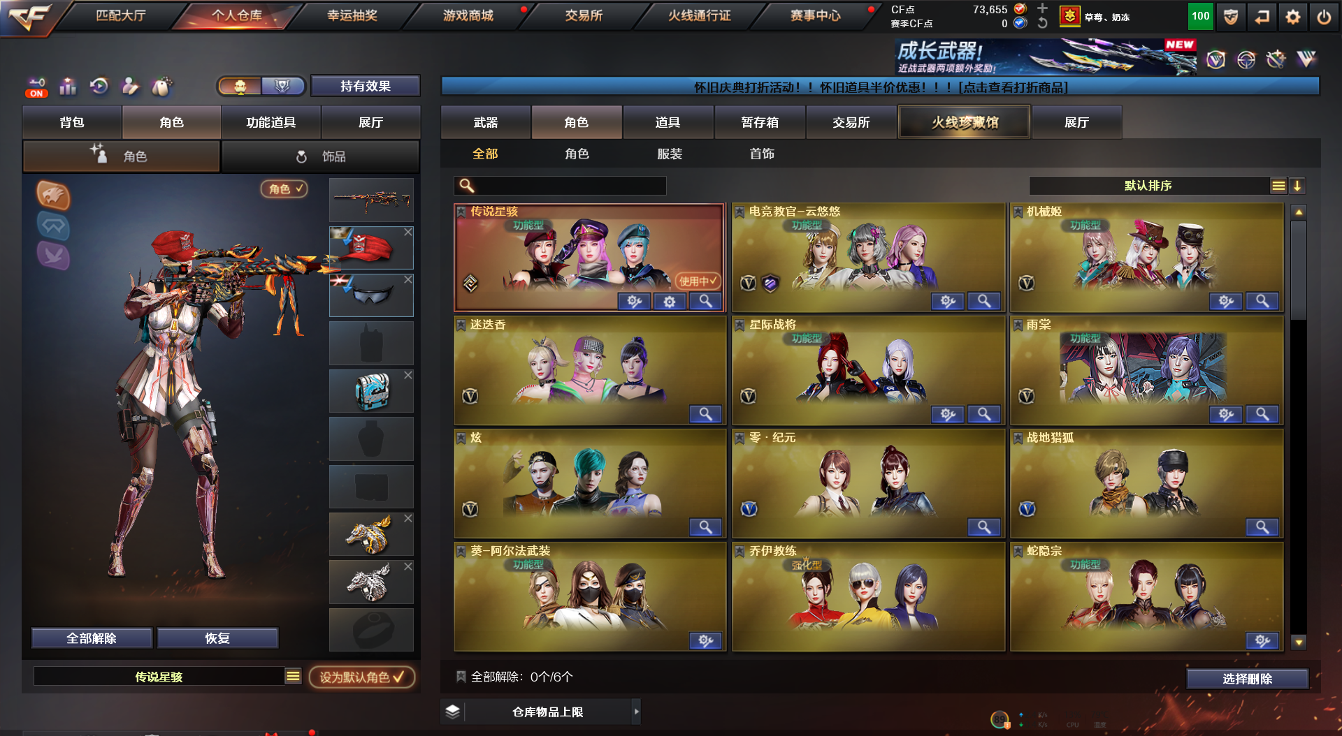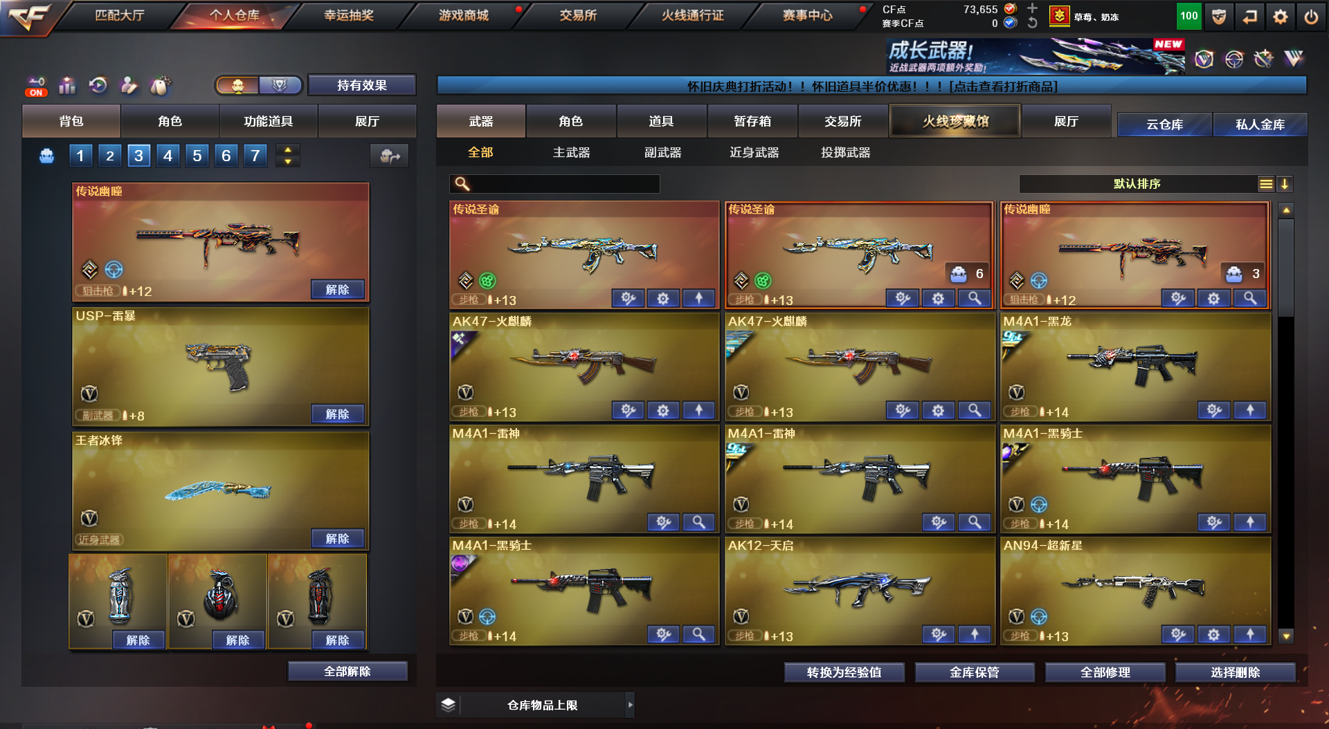 【Lv.100 高阶大元帅】VIP6 163V,4王者,4炫金,传说圣谕(2)/传说幽瞳/幻神电流骇客 /幻神星火小队/幻神AGCFPL S24冠军 /幻神黄忠/幻神荣耀世冠白鲨2023 /幻神AG/幻神曹操 /幻神丹凤/幻神降龙/幻神CFS2022/传说星骇 _炫/_迷迭香/雨棠/电竞教官-云悠悠/机械姬/M200-幻神(2)/M200-竞技荣光(2)/Barrett-毁灭/Barrett-极光/Barrett-暗月传说(4)/竞技荣光套装/夜魔套装/M200-幻神音效卡/Kar98K-星神音效卡/QBZ03-金色蔷薇音效卡/QBZ03-天罚音效卡/M4A1-雷神音效卡/M4A1-黑骑士音效卡/AK47-火麒麟音效卡/死神-雪域霜狐-怀旧音效卡/Barrett-毁灭音效卡/AWM-昌龙-怀旧音效卡/AWM-裁决音效卡/炼狱-百战金芒-庆典舞曲音效卡;USP-雷暴,柯尔特-荣耀世冠白鲨2023,柯尔特-冠军之特,炽芒蝶刃,Knife-冠军之刃,传说星骇,电竞教官-云悠悠,