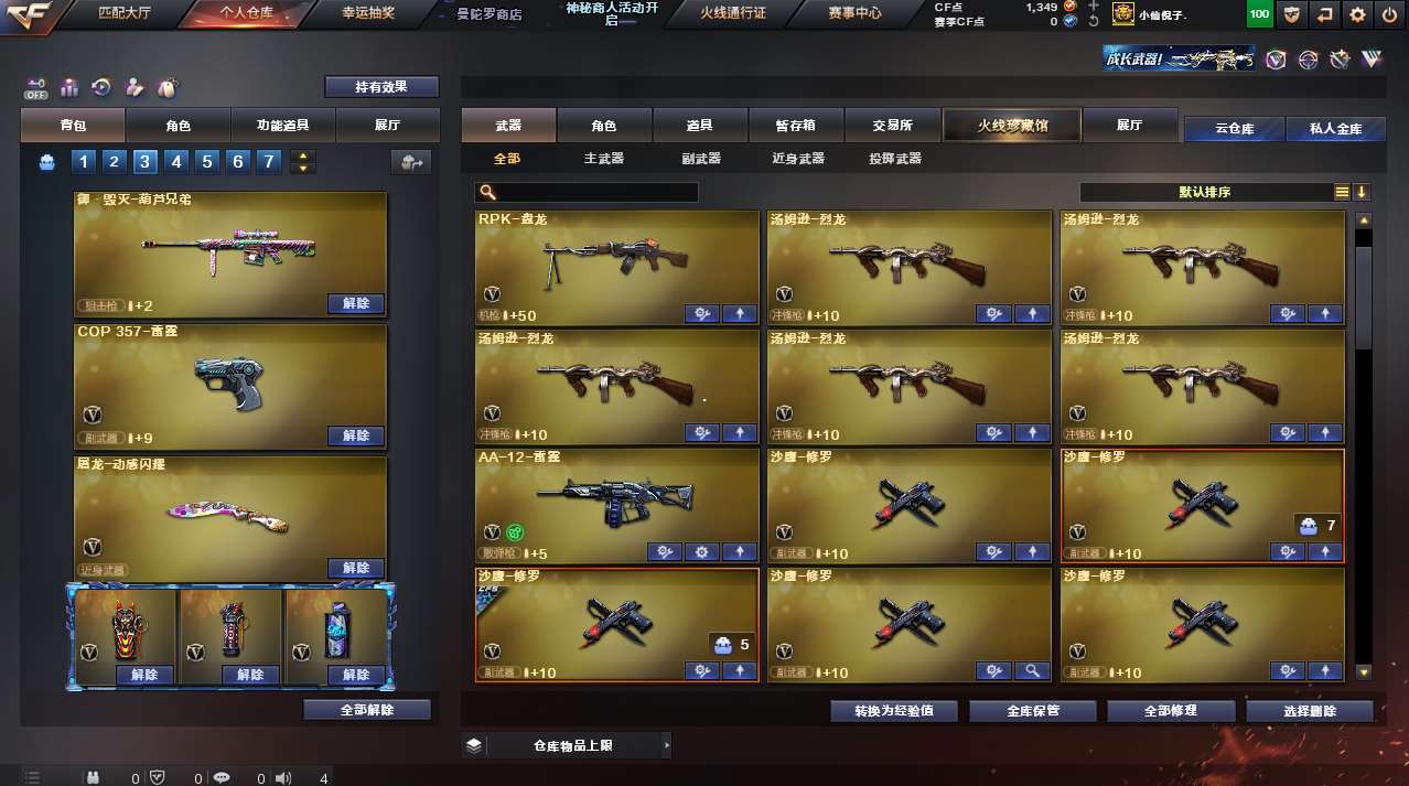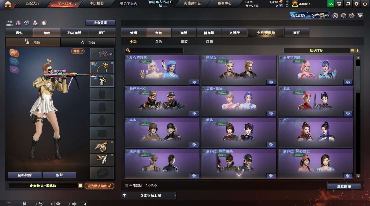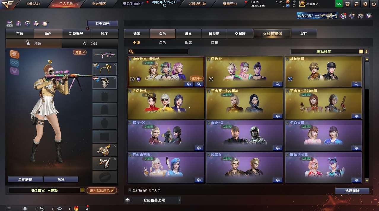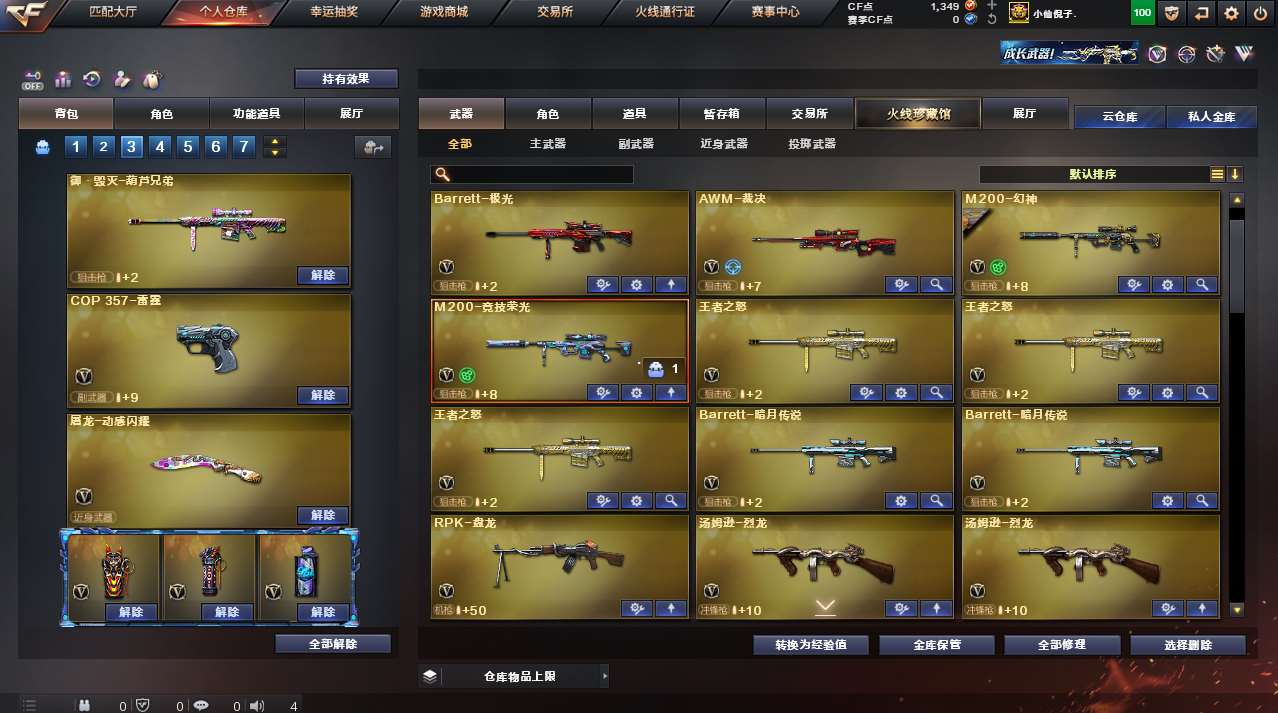 m200幻神+幻神黄忠+幻神音效卡】【usp雷暴+竞技柯尔特+cop雷霆+cop堕天神】【m200竞技荣光】【裁决】【竞技荣光套+云悠悠】【白虎电玩蓝兔】【毁灭荣耀之怒+火麒麟轻羽】【毁灭音效卡+雷神音效卡+黑骑士音效卡+昌龙怀旧音效卡】【满配乔伊教练+王者葵惊若翩鸿+王者零华冠丽服】【金色蔷薇】【盘龙+5烈龙+芭蕾特零水下丽影+斯泰尔蝴蝶】【雷神精英刀锋】【试炼破坏者】【1911大黄蜂】【手斧镜】【闪光护目镜+超级背包+炫彩背包】;USP-雷暴,电竞教官-云悠悠,妮妮,RPK-盘龙,QBZ03-金色蔷薇,M200-幻神,