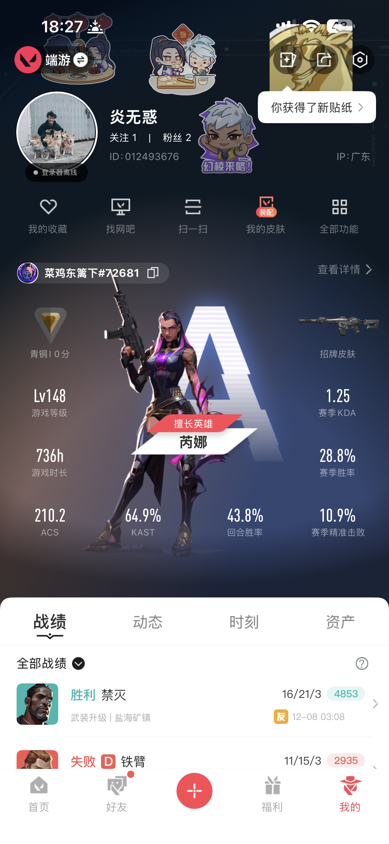 • 游戏区服:无畏契约-wegame / wegame / wegame