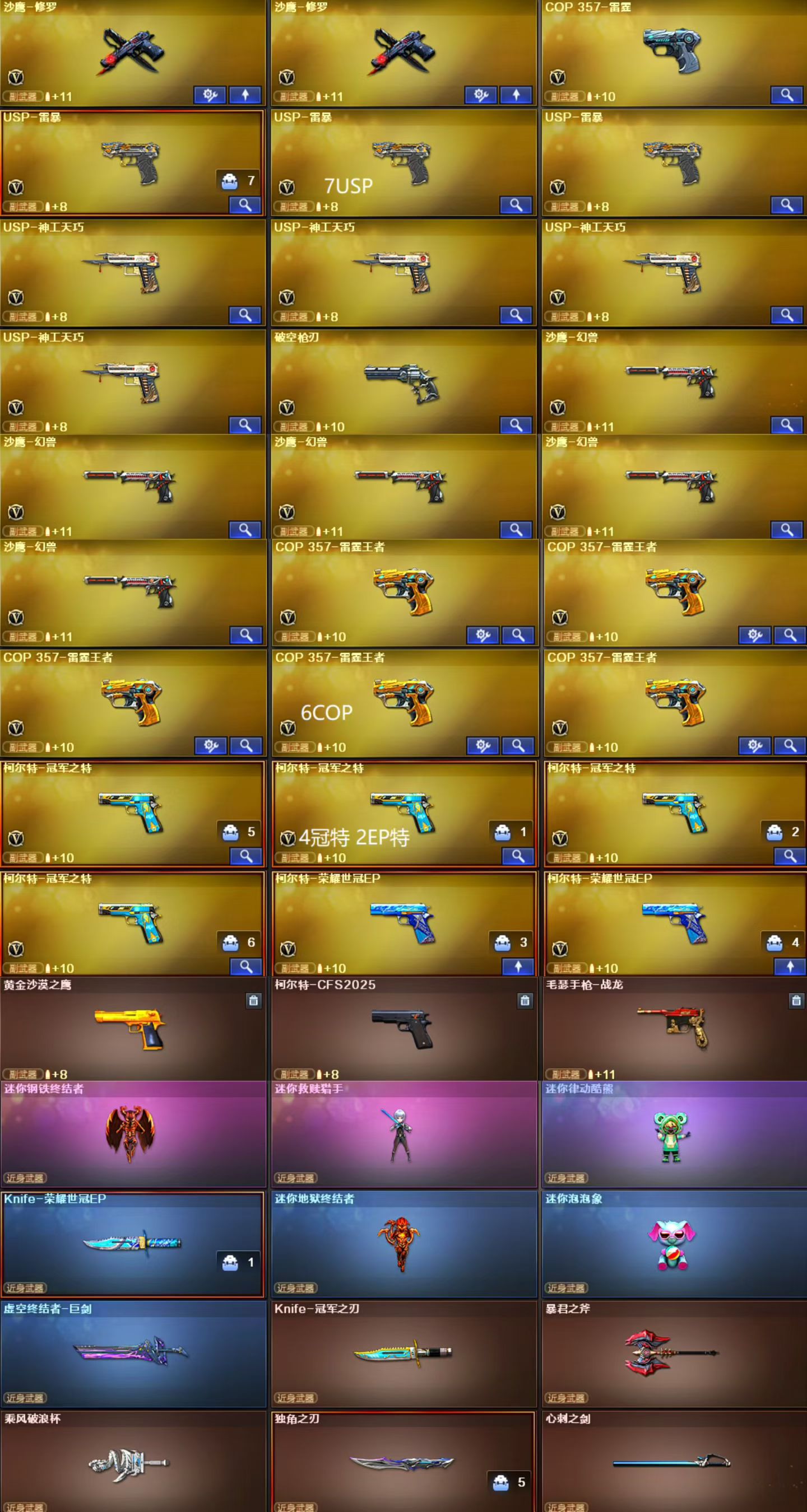 🍁金名id:不如诀别♥CFS已补♥传说灵眸五套幻兽♥EP5皮幻神卡裁决卡♥7USP6COP6柯尔特