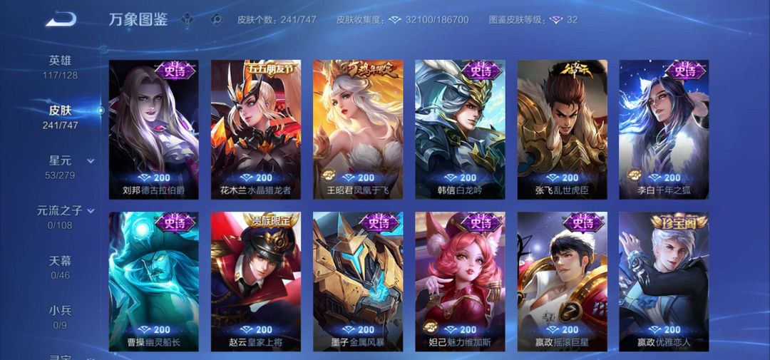 V11✨753皮肤✨千魇归渊✨无相✨神罪✨山海经天机白泽✨全套死神联动✨全套穆夏✨馥梦繁花✨美神临世✨库洛米✨大耳狗✨全荣耀水晶✨螭龙剑✨全无双