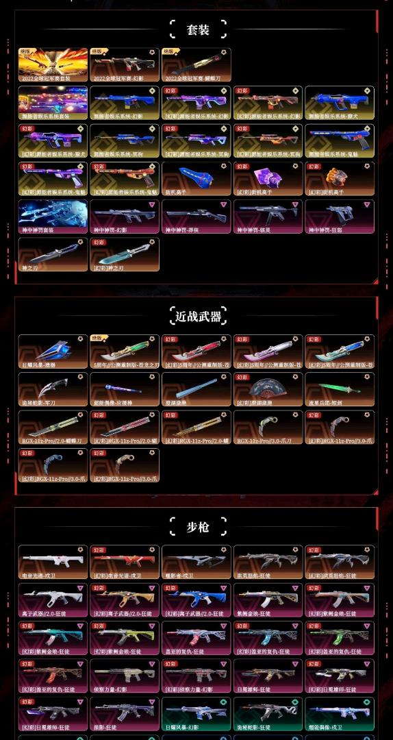 6w库⚡️22冠军套⚡️神罚套⚡️电玩套⚡️盖亚雄狮紫金流脓掠夺离子ak侦查幻影⚡️显卡爪蝴蝶 扇子