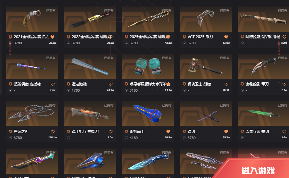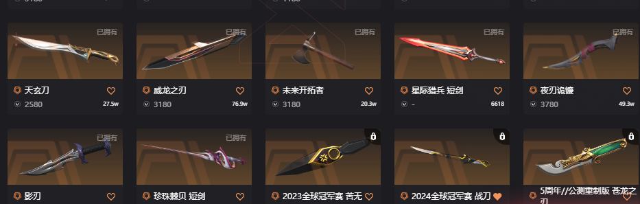 十二万库存21冠军22冠军25冠军黑波;西部未来 奥丁,奇点 战神,黑波之刃,镭切,威龙之刃,VCT 2025 爪刀,上古龙炎 判官,